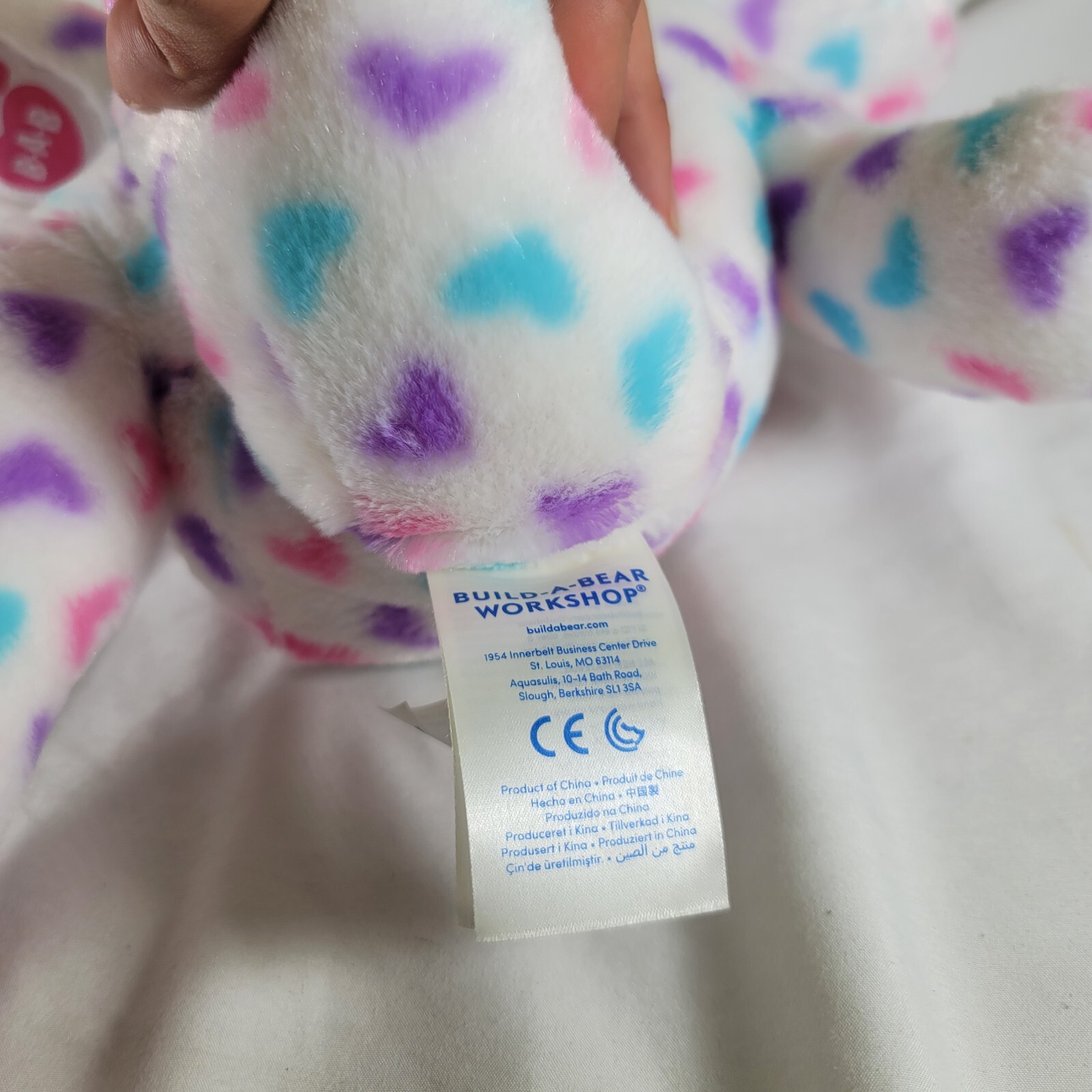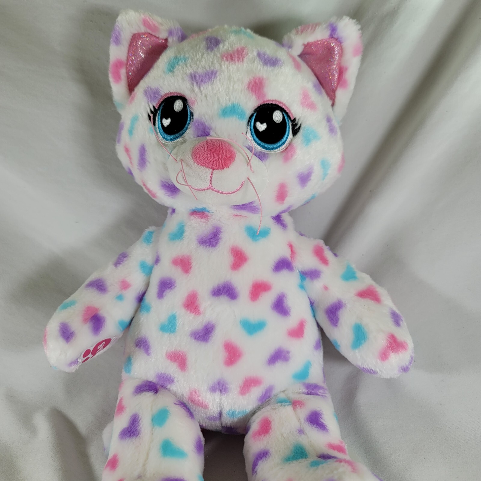 Build A Bear 17 WHITE CAT Stuffed Plush Pastel Hearts Sparkly Pink Ears Feet