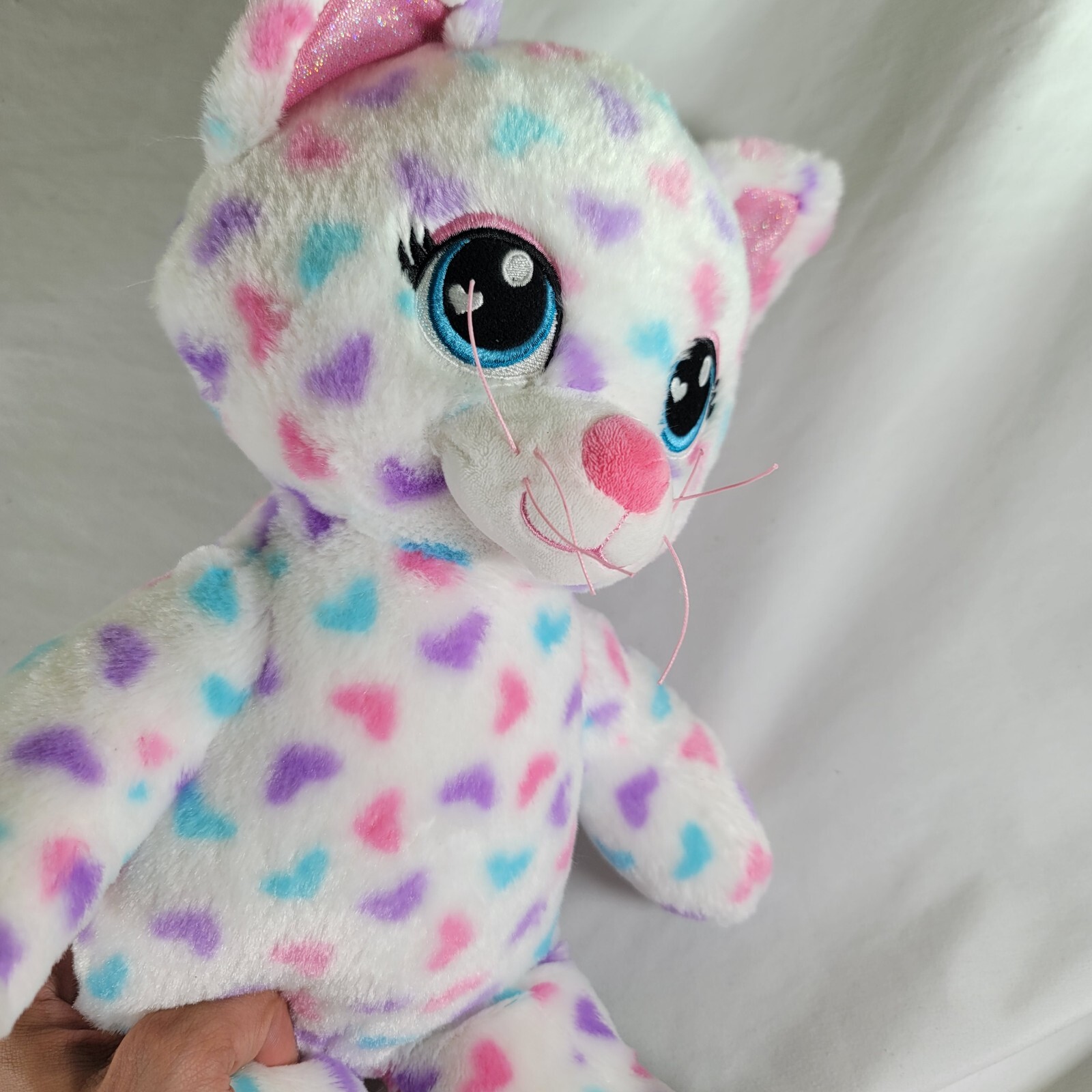 • Build A Bear 17 WHITE CAT Stuffed Plush Pastel Hearts Sparkly Pink Ears Feet