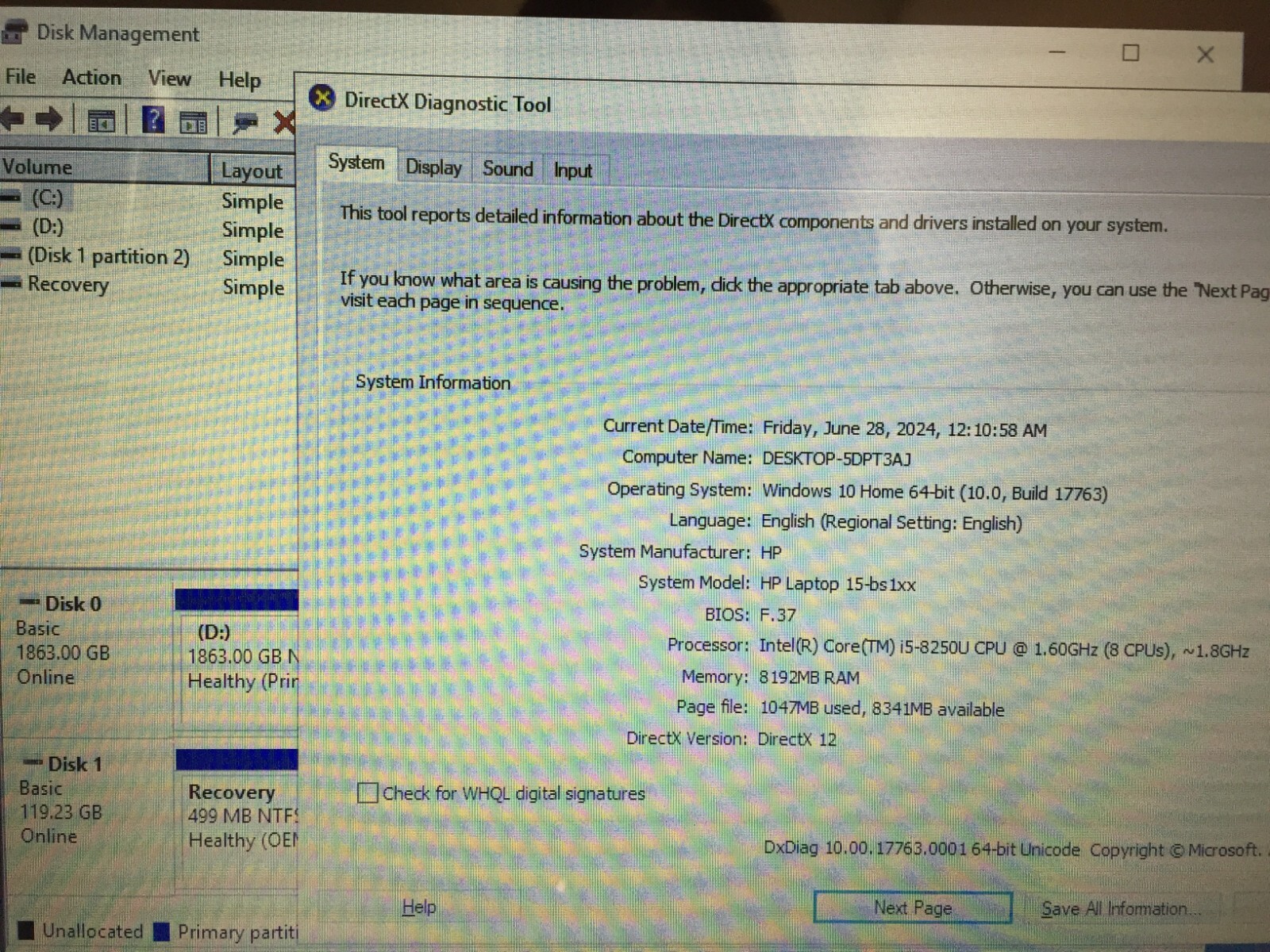 HP 15-bs168cl 2NV94UA ABA 15.6 Touchscreen Laptop/Intel i5-8250U/8GB RAM/Win10