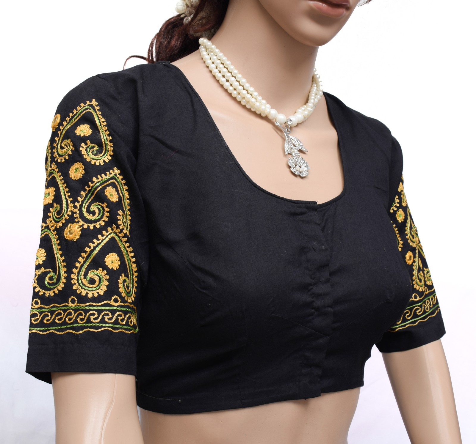 как выглядит Sushila Vintage Black Readymade Stitched Sari Blouse Cotton Embroidered Choli фото