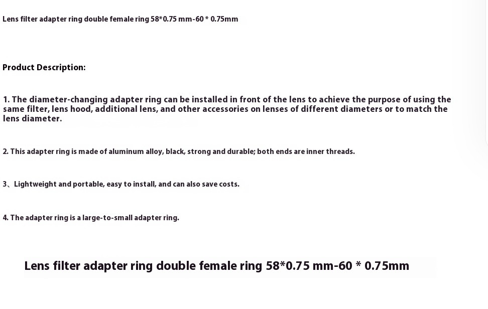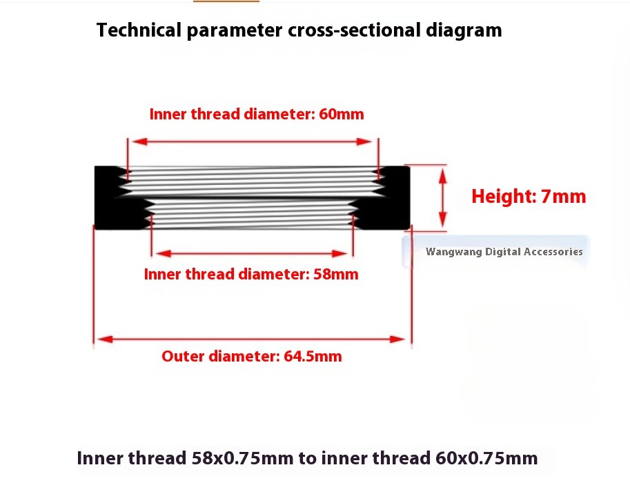 как выглядит M58-M60 58mm x 0.75 60mm x 0.75 Dual Female threaded camera lens adapter ring фото