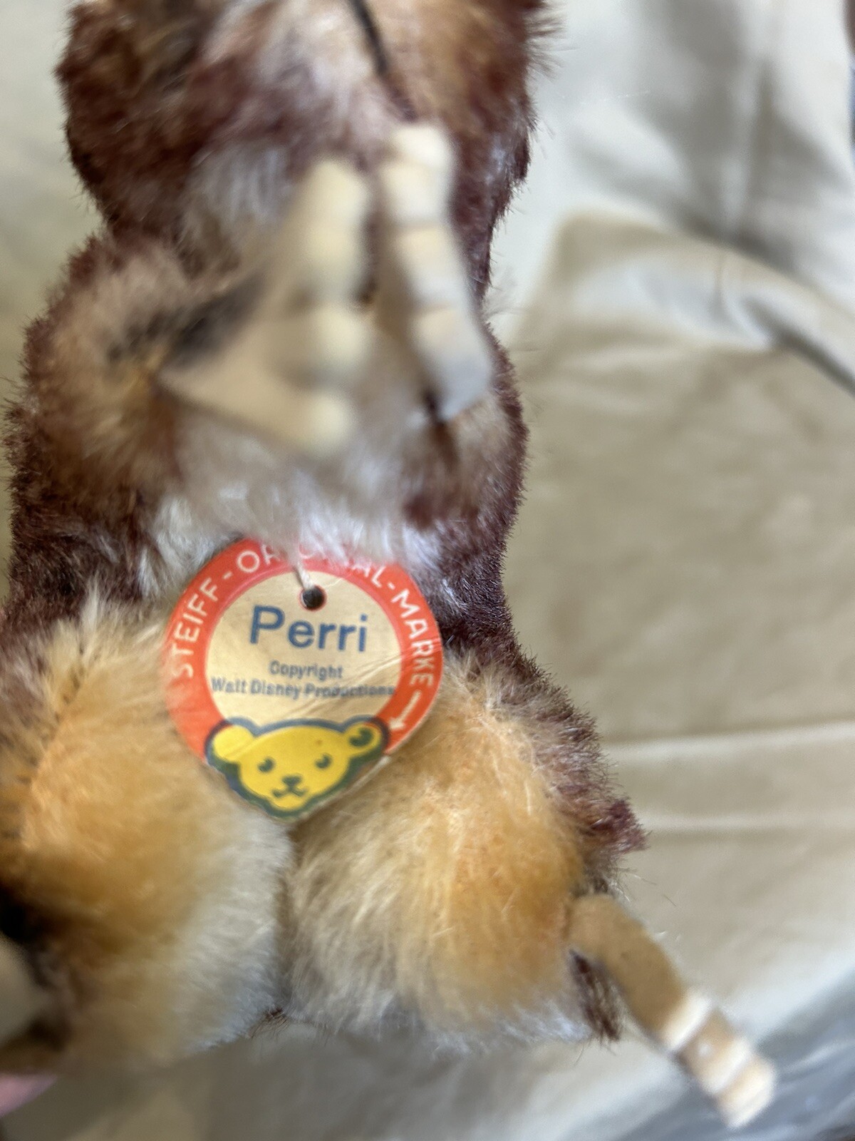 1960s Steiff Walt Disney Mohair Squirrel Perri w/ Button And Tags