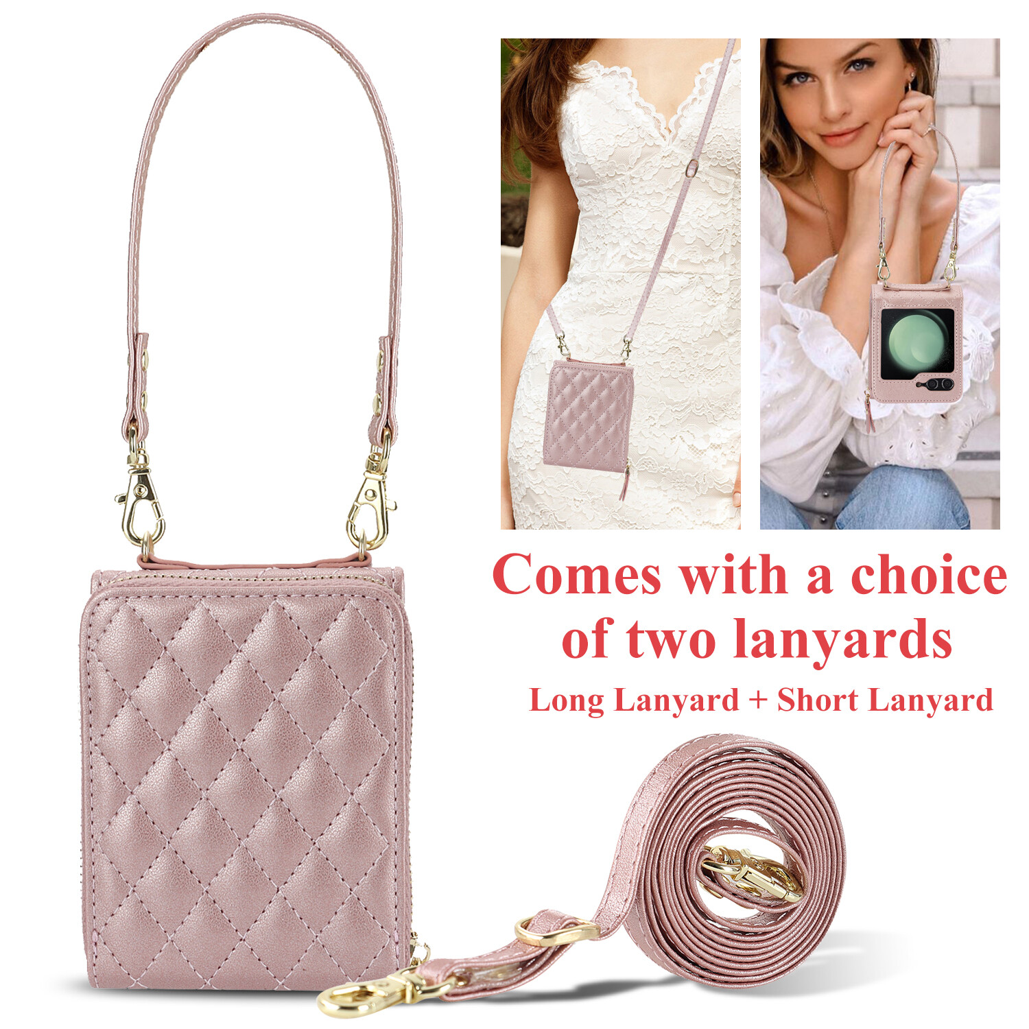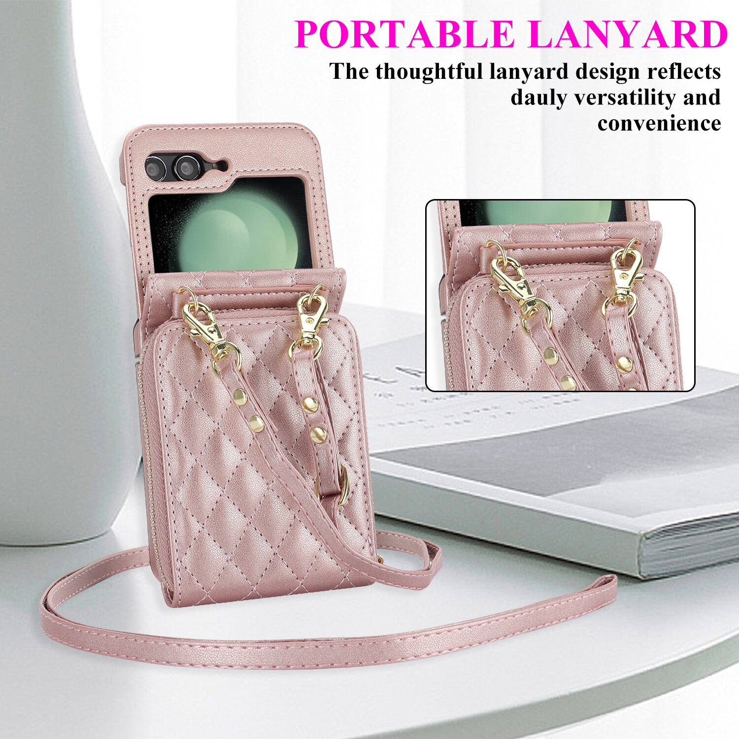 For Samsung Galaxy Z Flip 7 6 5 4 3 Leather Flip Card Wallet Case W/ Lanyard