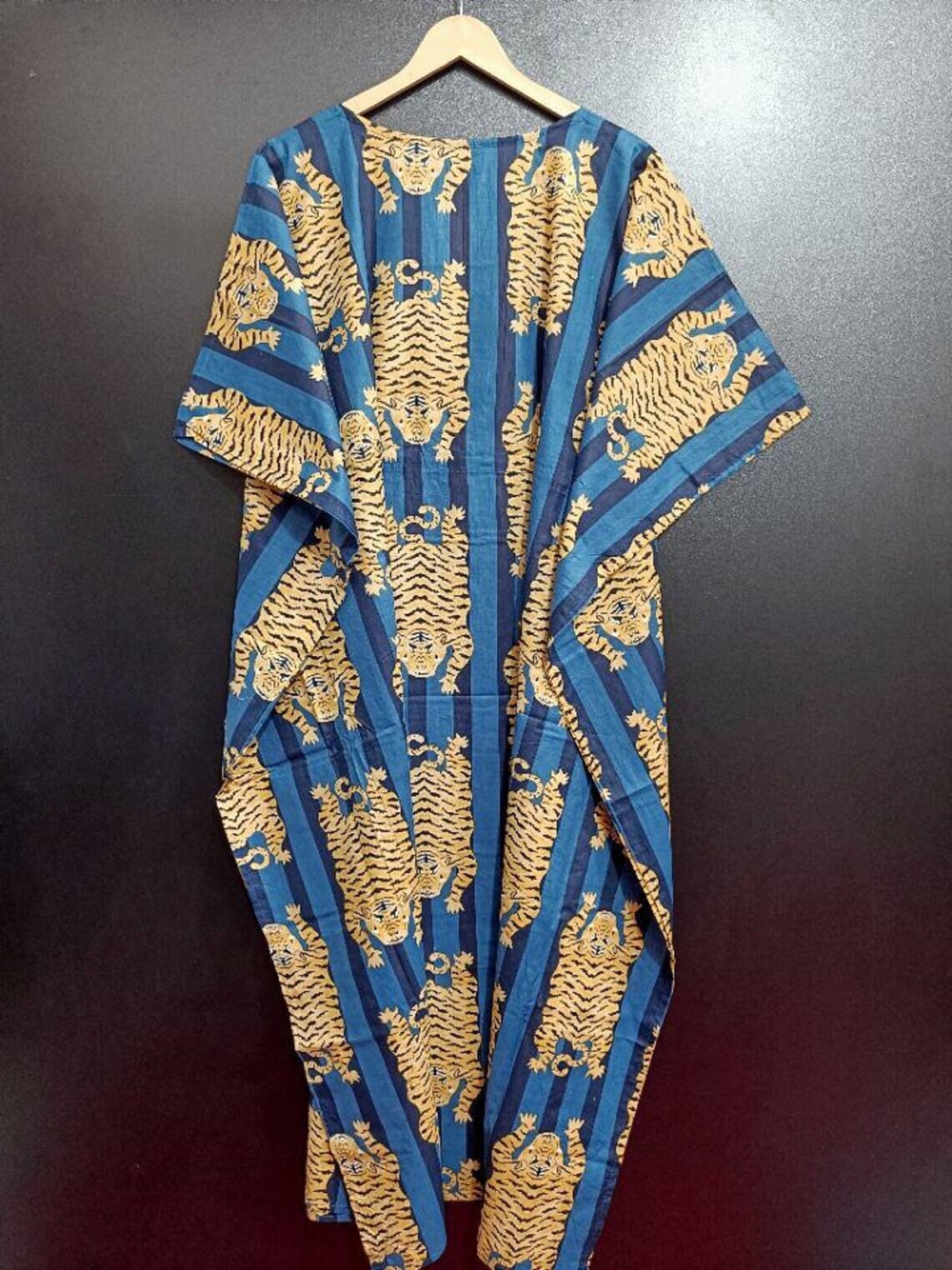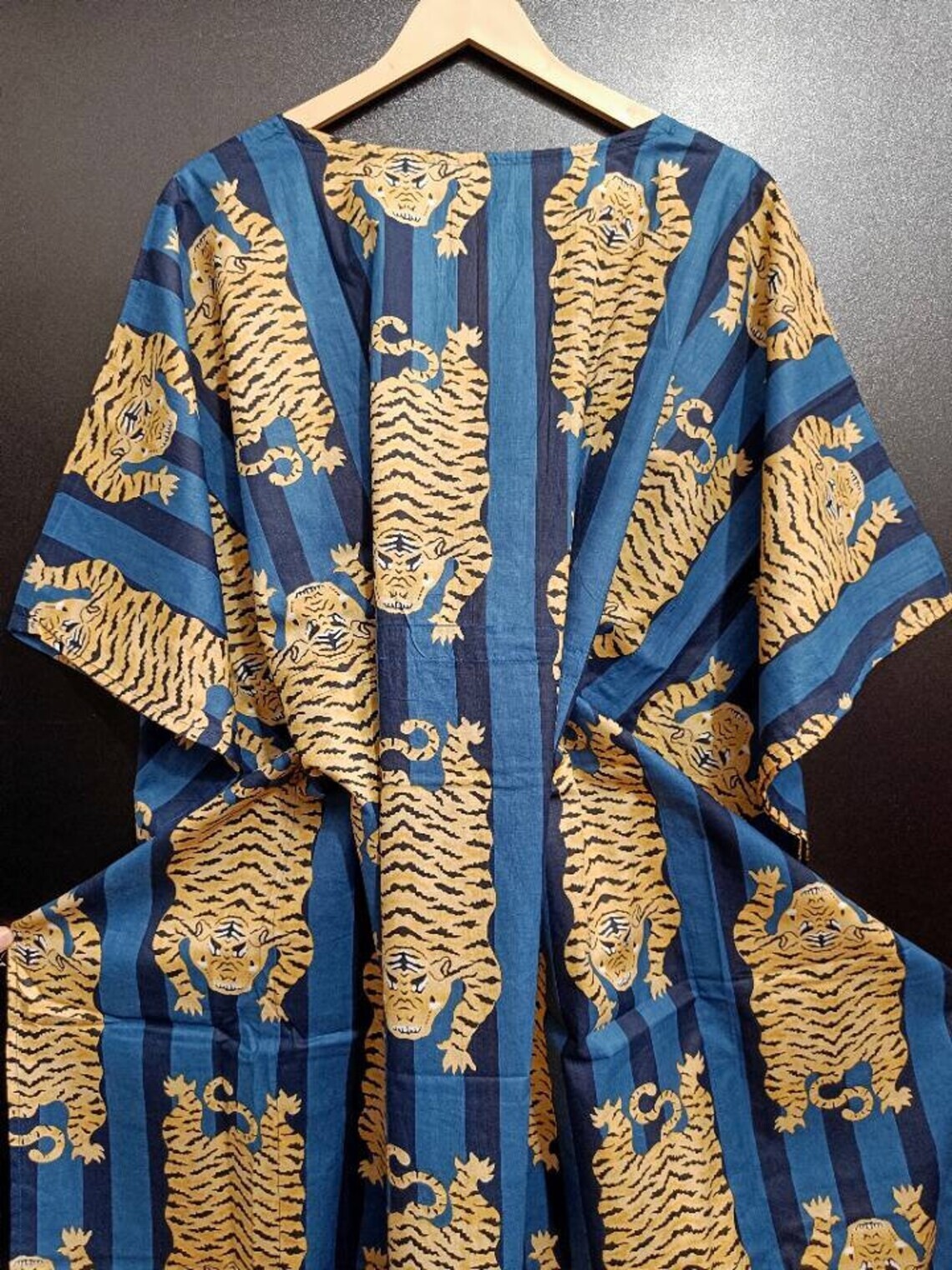 как выглядит Indian Blue Tiger Printed Cotton Hippie Maxi Women Nightwear Caftan Dress фото