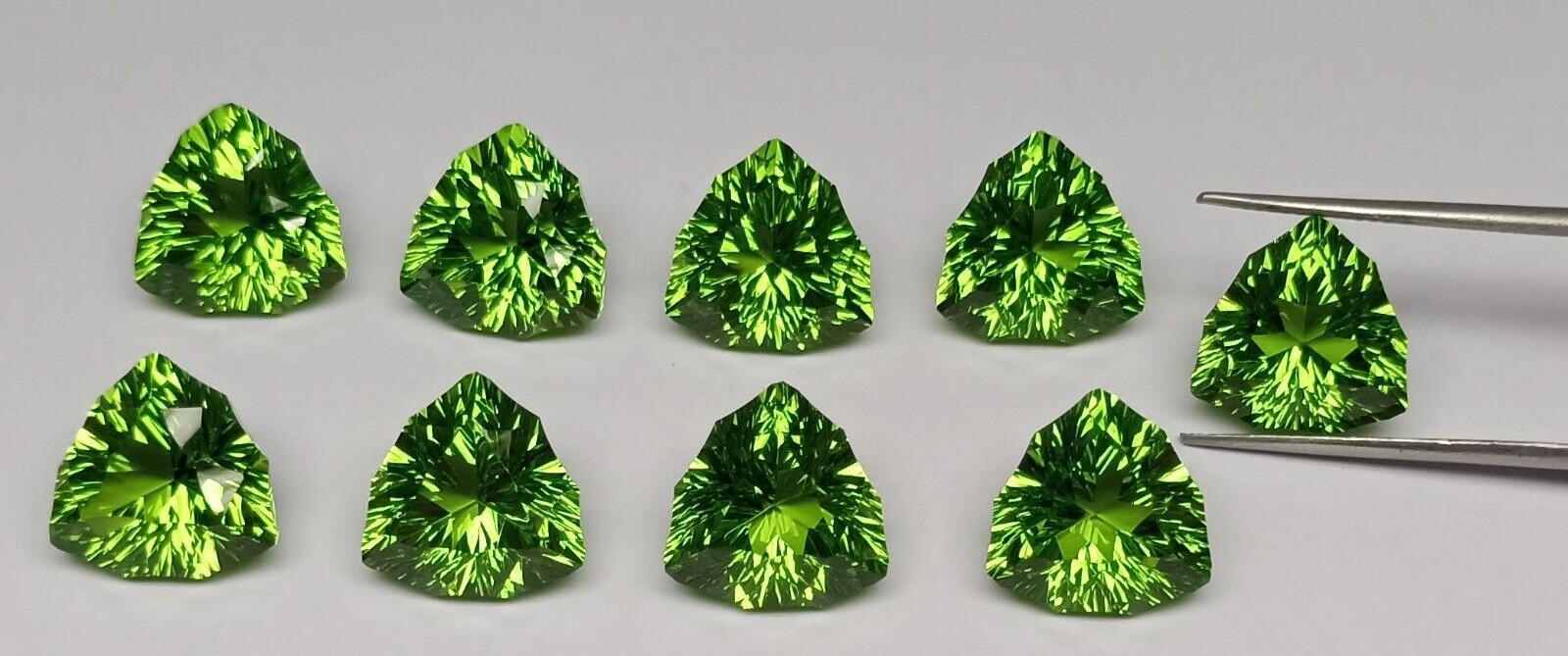 как выглядит 12X12 MM peridot quartz fancy trillion shape, concave cut trillion фото