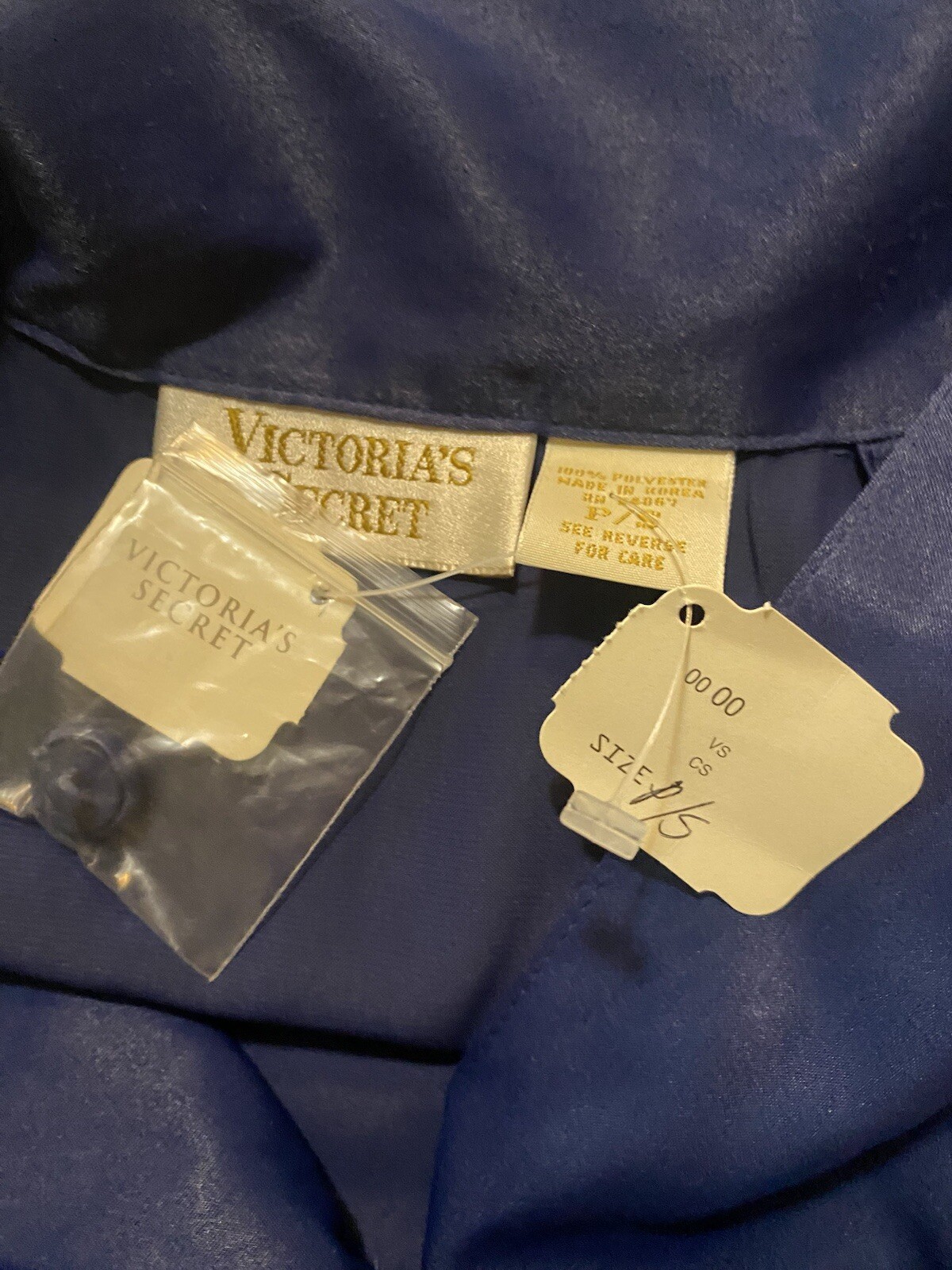 как выглядит Vintage Victorias Secrets Blue Gold Label Short Sleeve Satin Shirt Dress Sz P/S фото