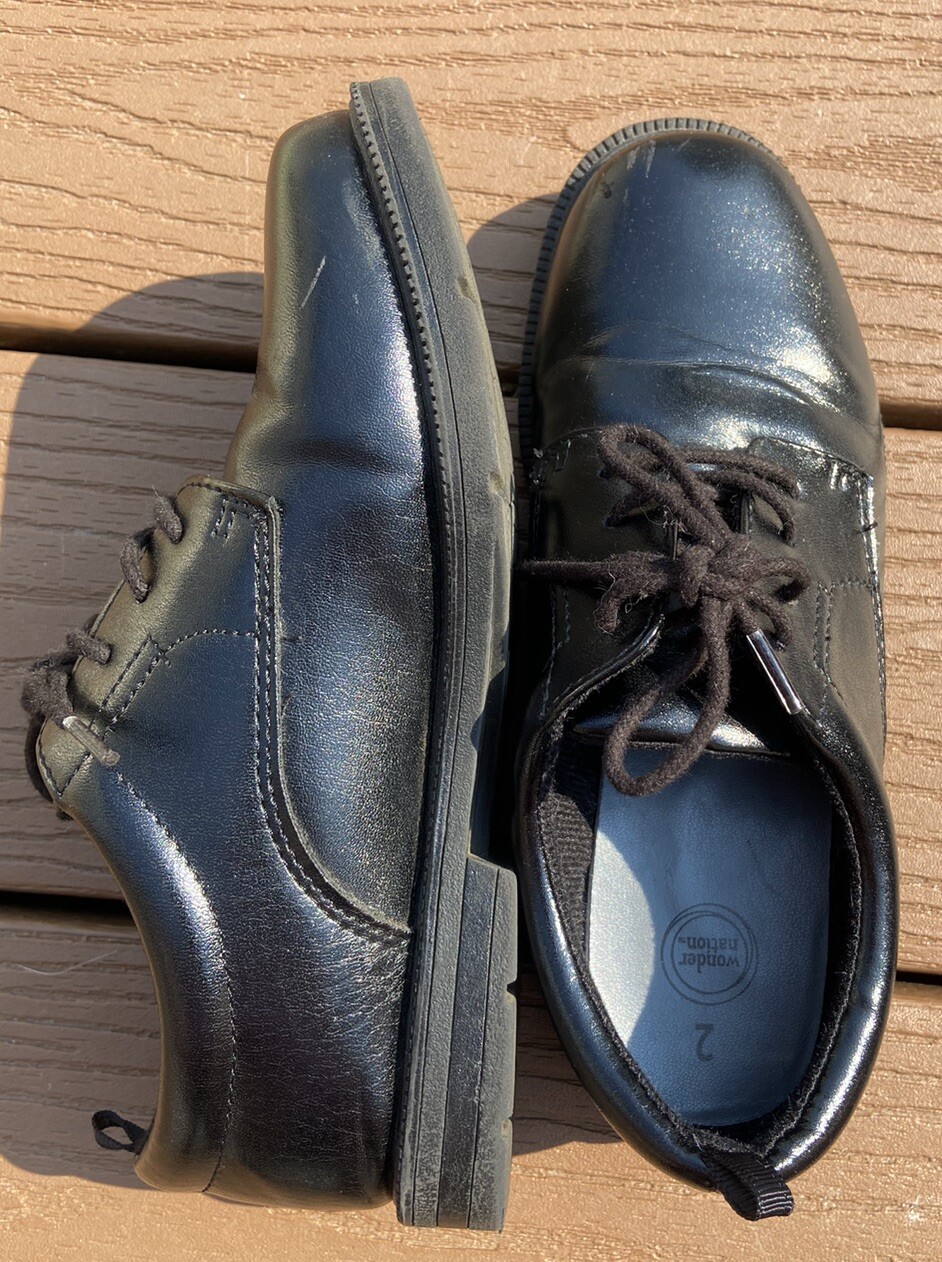 Wonder Nation Boys Black Lace Up Dress Shoes Size 2 Oxford Church Dress Atrire