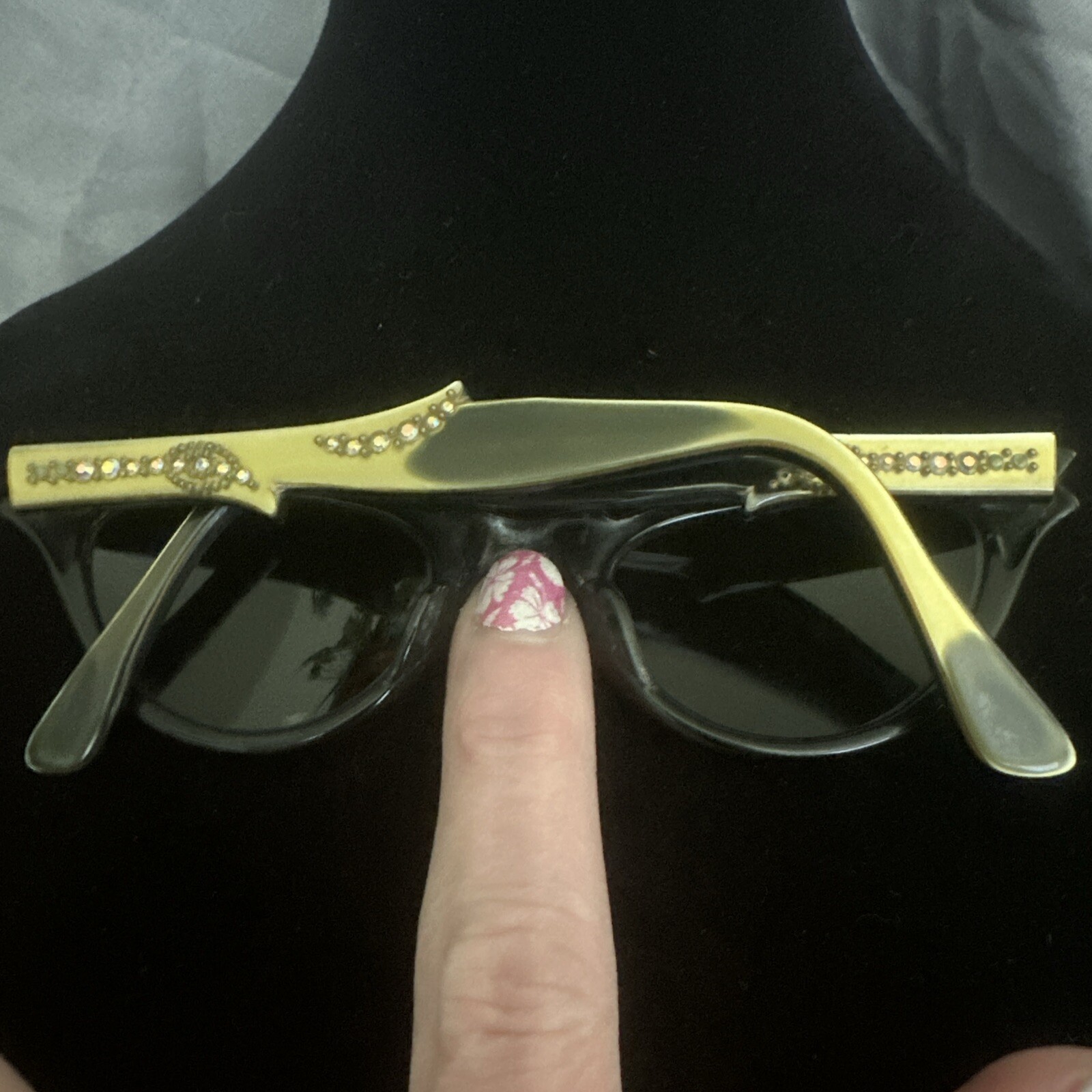 Vintage French Cat Eye Rhinestone Sunglasses Made In France