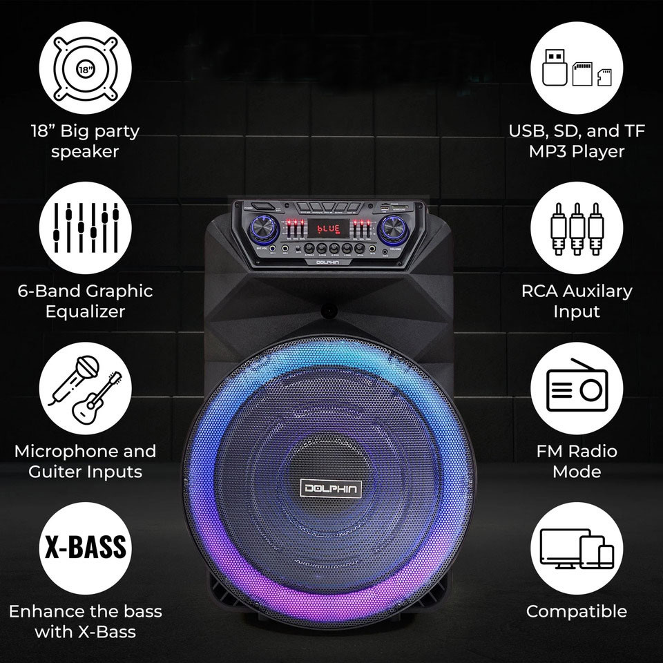 4500W 18 Woofer Portable Party Speaker Heavy Bass Rechargeble w/Mic Remote LED