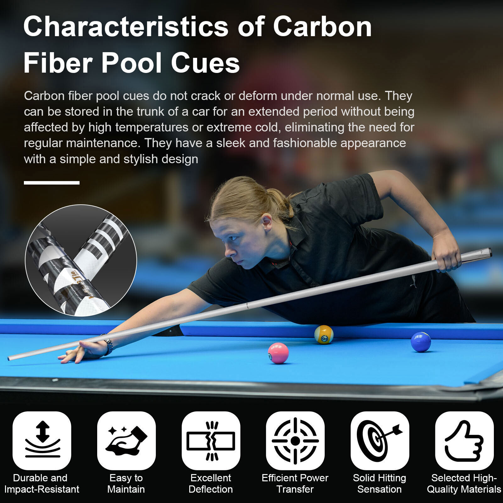 57 1/2 Jointed Billiard Pool Cue Sticks Carbon Fiber Snooker Cue Kit with Case