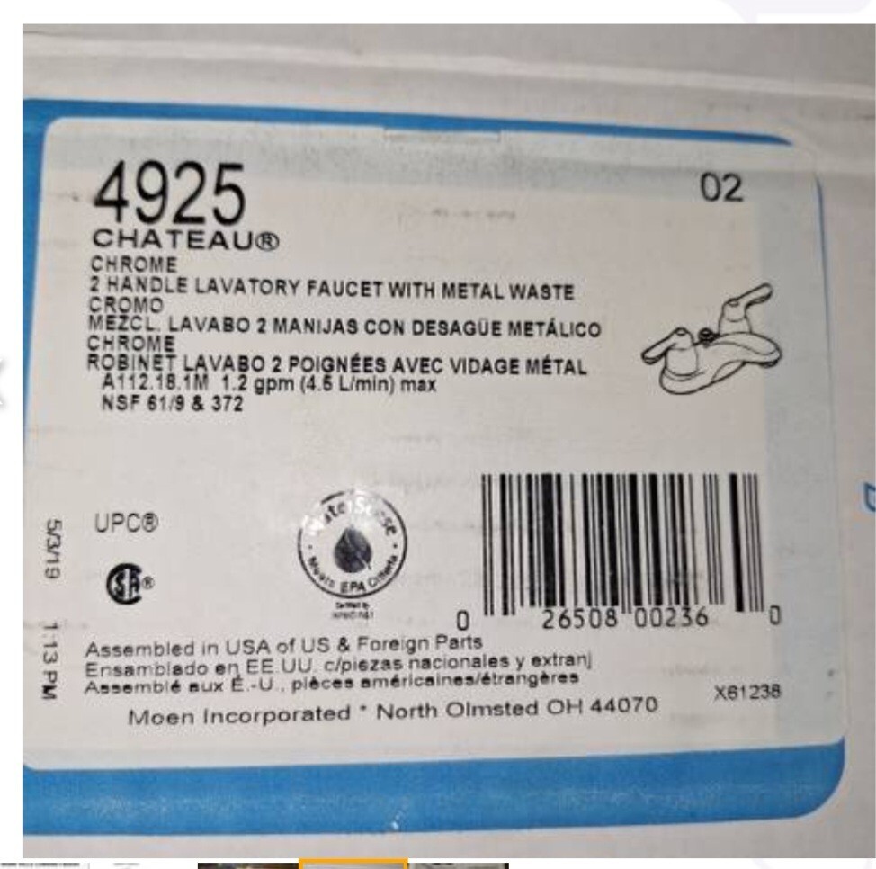 Moen 4925 Chateau Two-Handle Low Arc Bathroom Faucet - Chrome w/ drain assembly