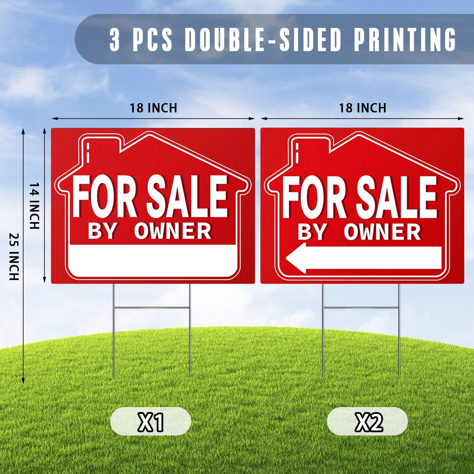 For Sale By Owner Yard Sign 3 Pack , 18 X 14 Double-Sided Yard Signs with ...