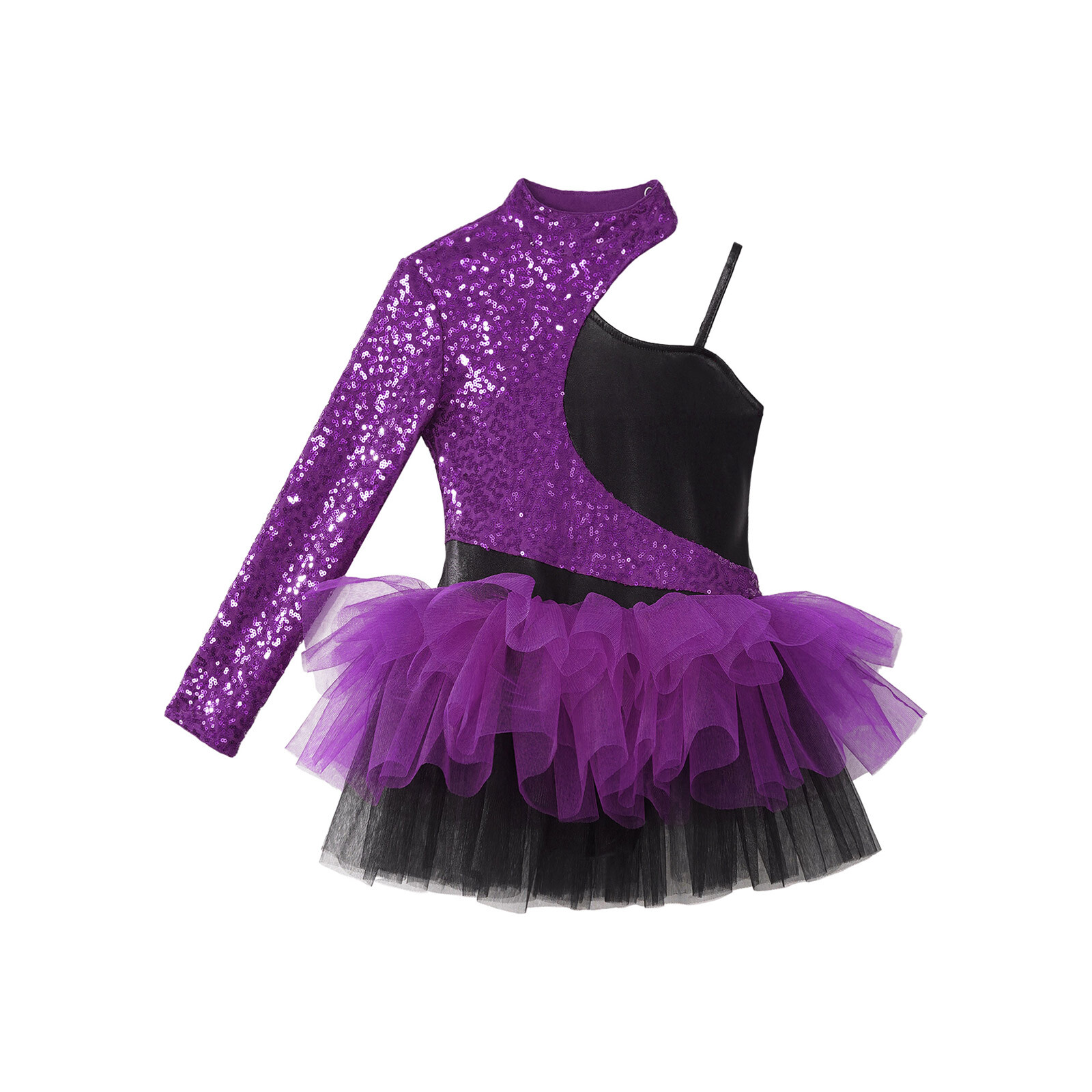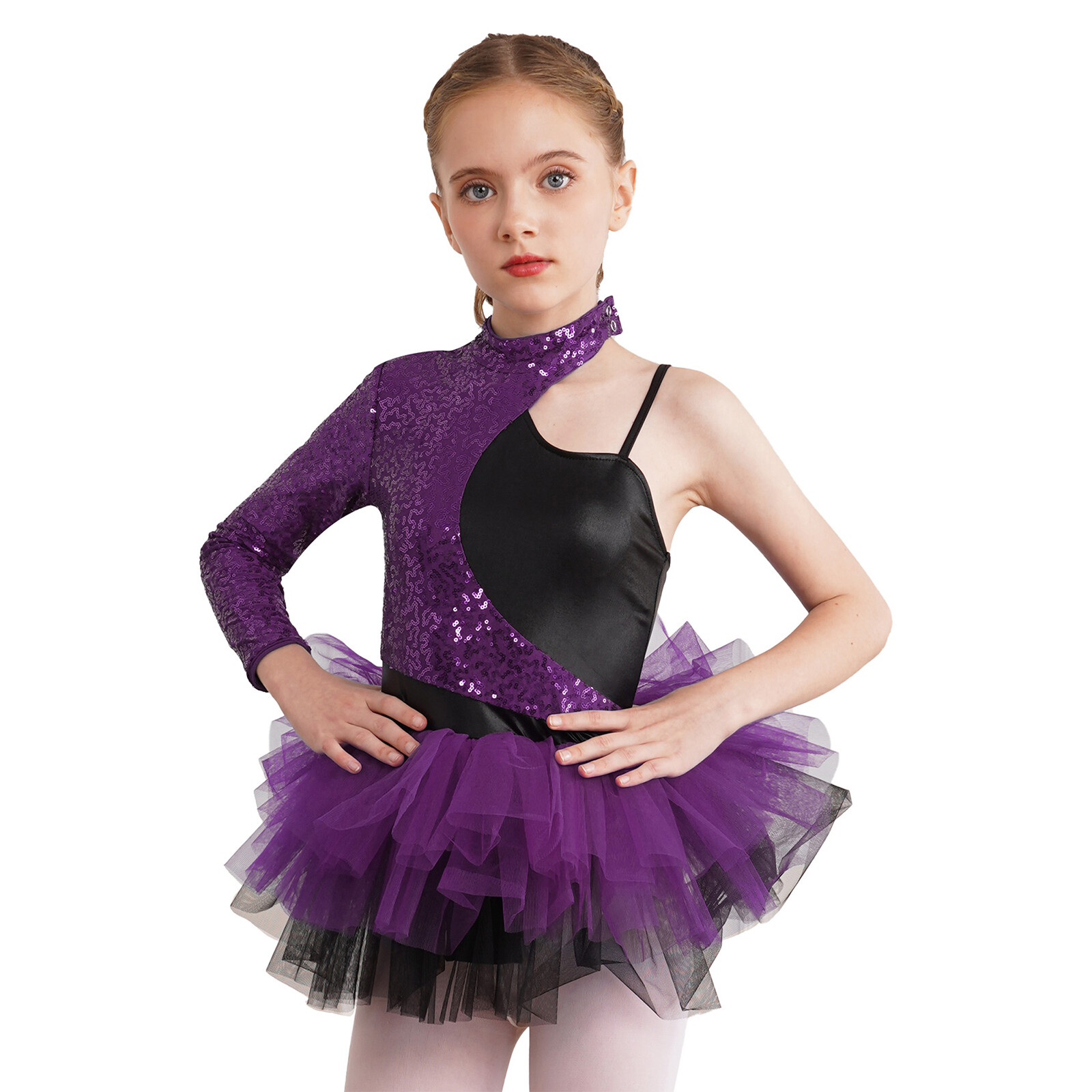 Kids Girls Dancewear Latin Dress Competition Leotard Ice Skating Tutu Skirt