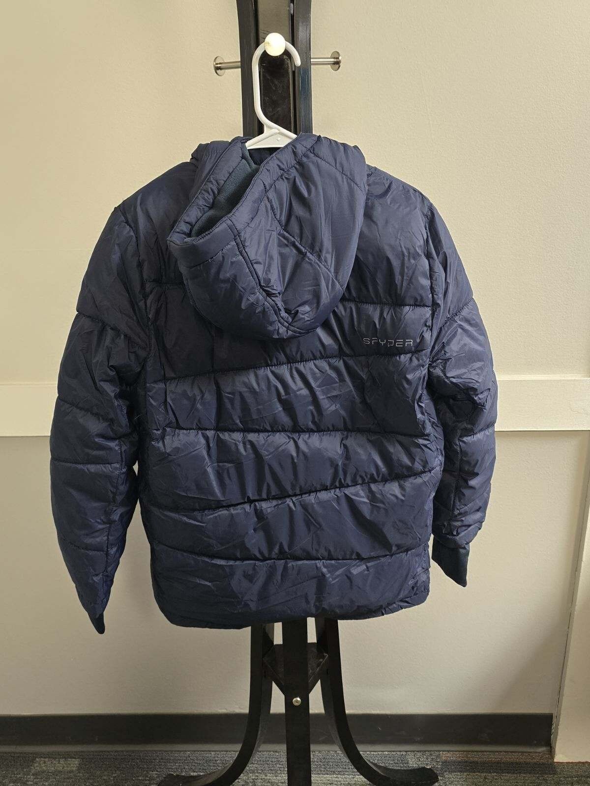 как выглядит Spyder Youth Boys Frontier Blue Hooded Puffer Jacket-Size M 10/12 фото