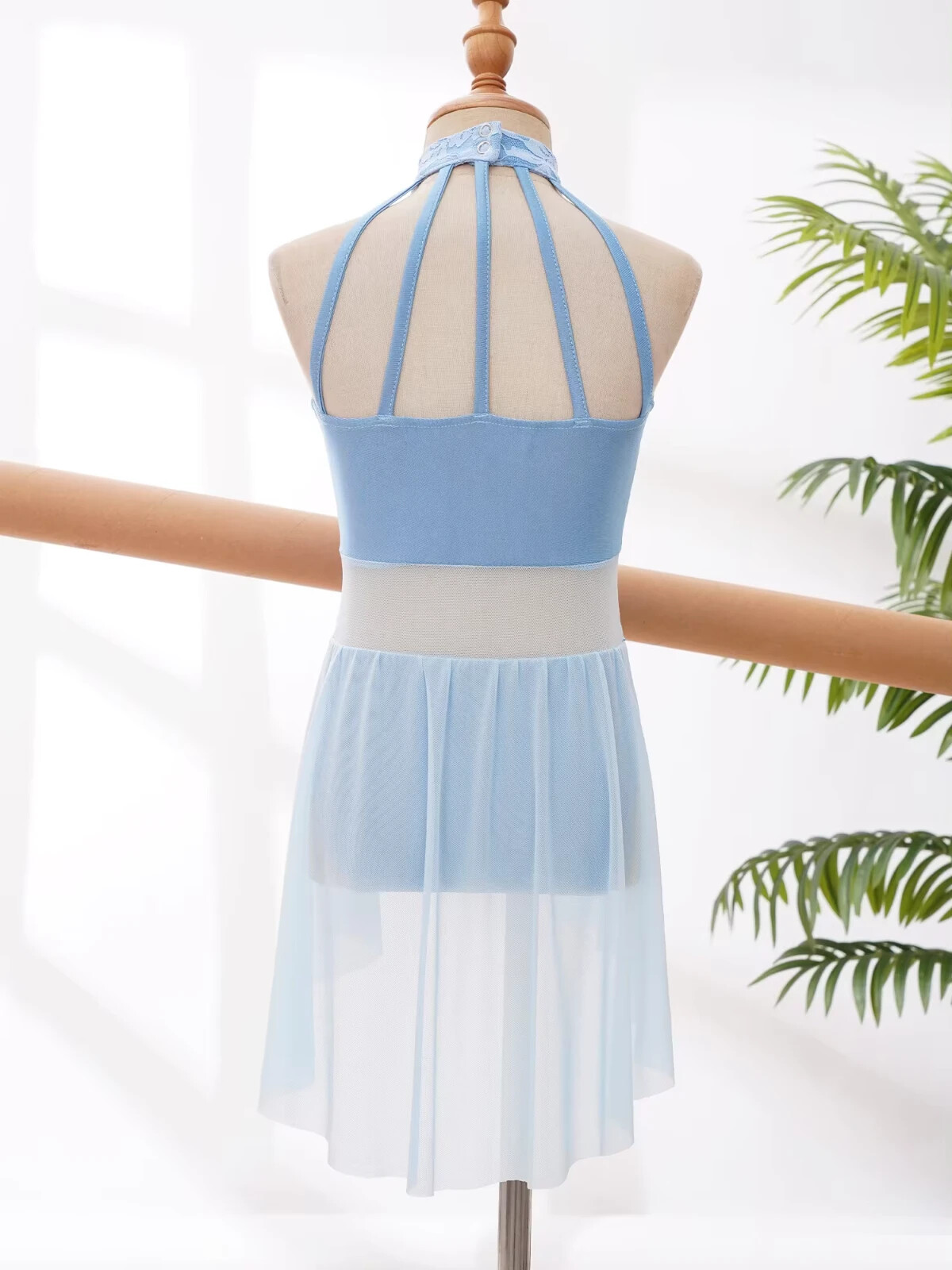 как выглядит Girls Sleeveless Ballet Dance Dress Lace Floral Skirted Leotard - Light Blue, 6 фото