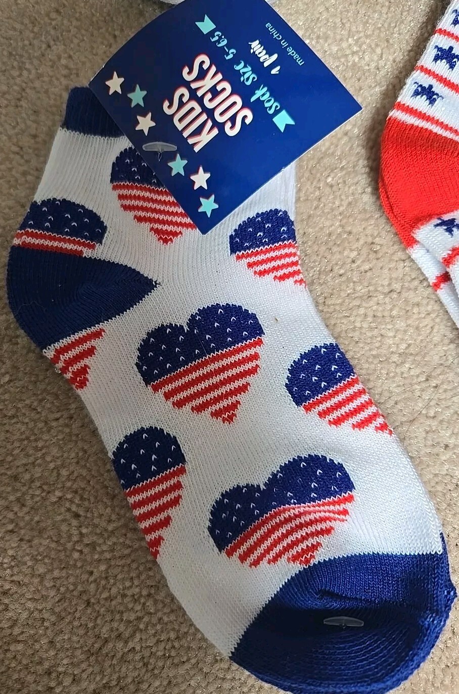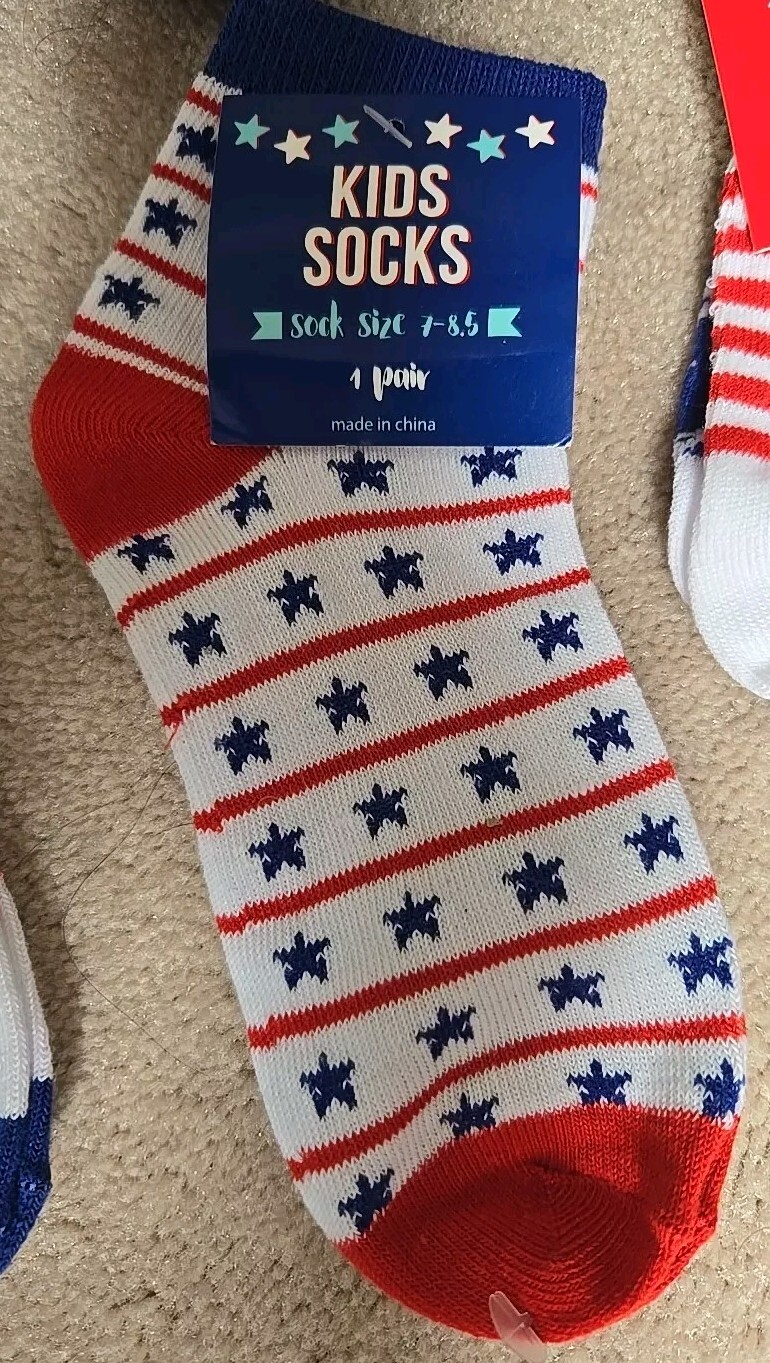 как выглядит 6 Pairs Of Patriotic Kids Socks Size 7-8.5 USA Red, White, Blue. фото