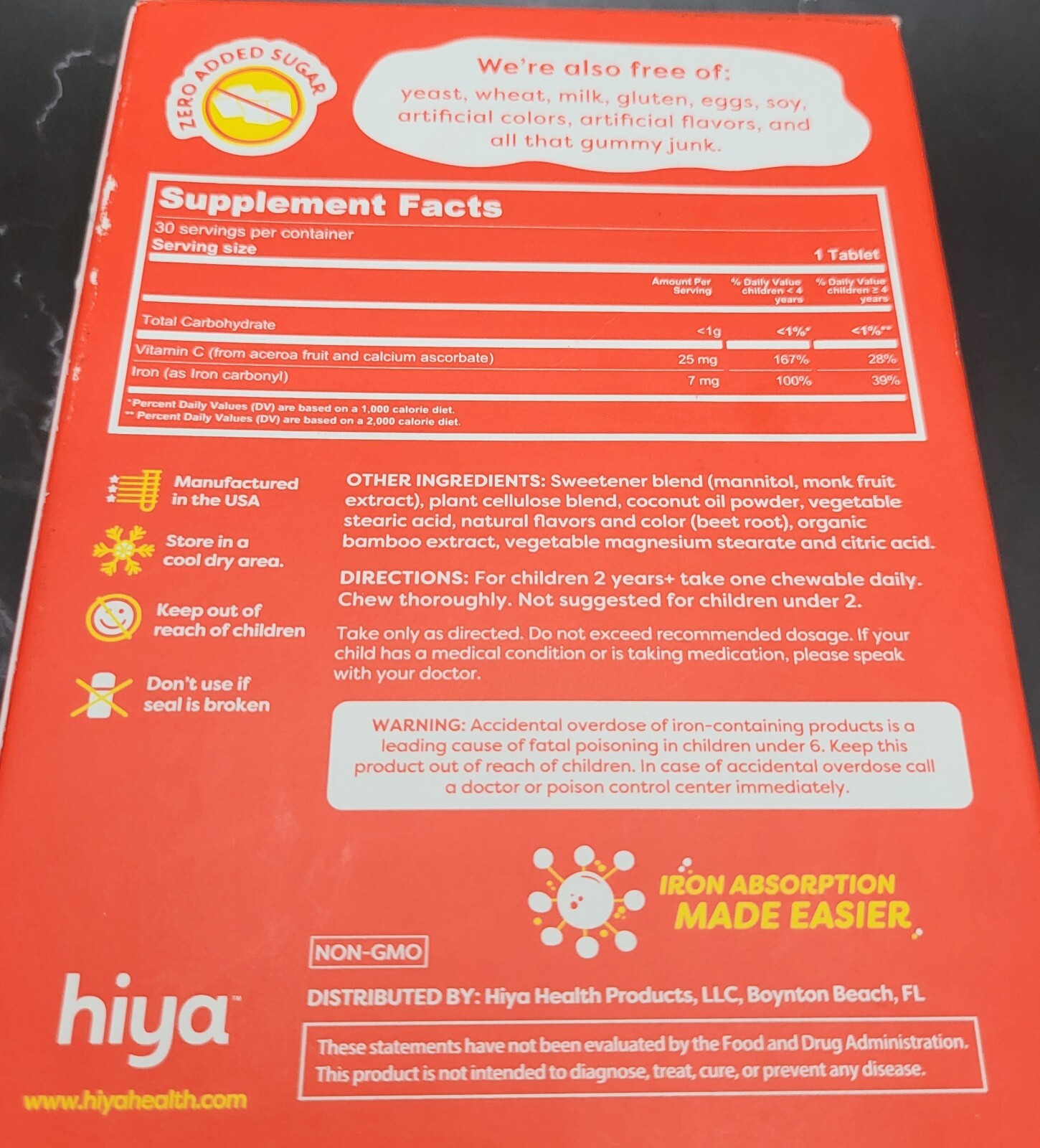 Hiya Health Kid's Daily IRON - 30 Chewables - 30 Day Supply Sealed Pouch