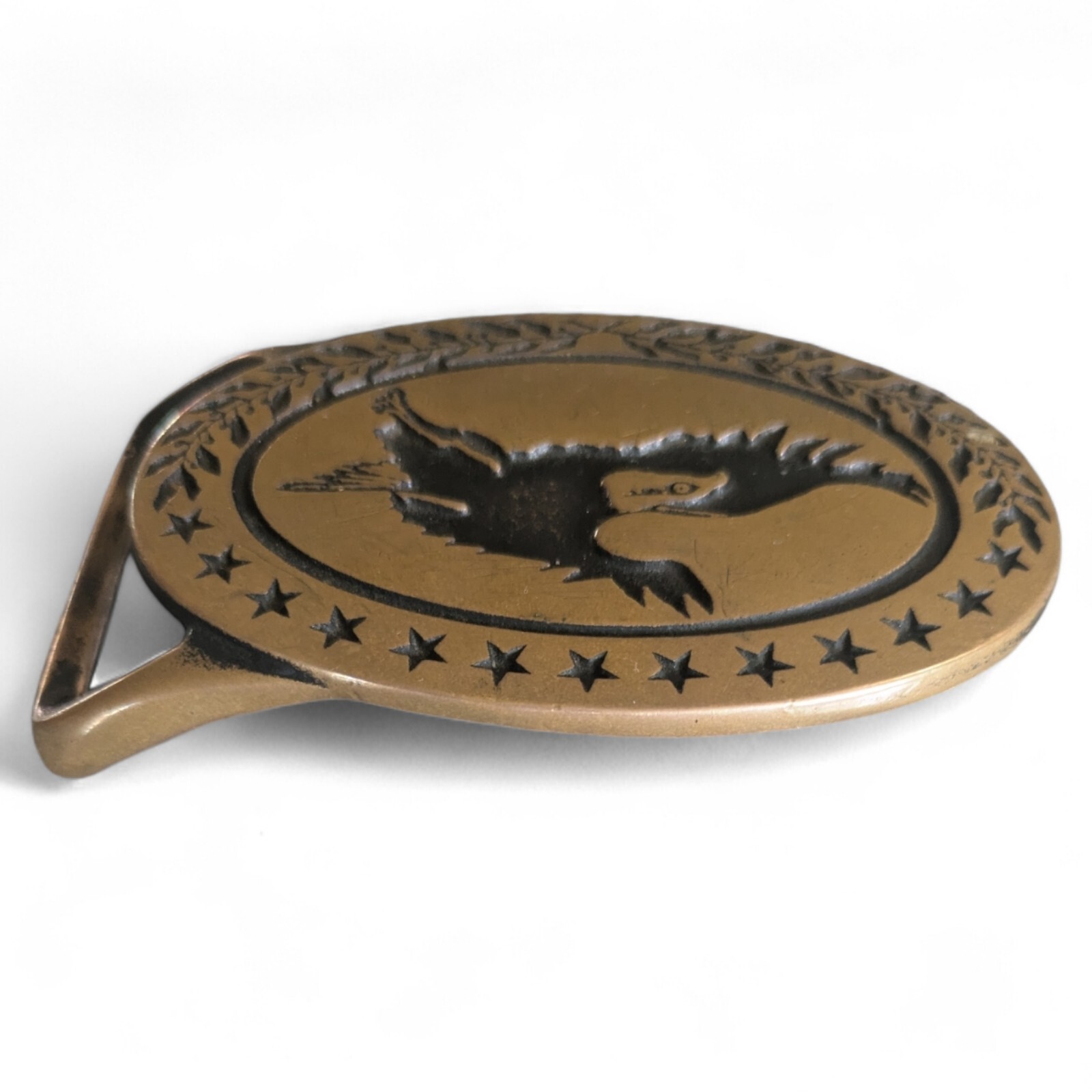 Vintage Tech-Ether Guild Buckle Bald Eagle Embossed Solid Brass Oval Belt Buckle