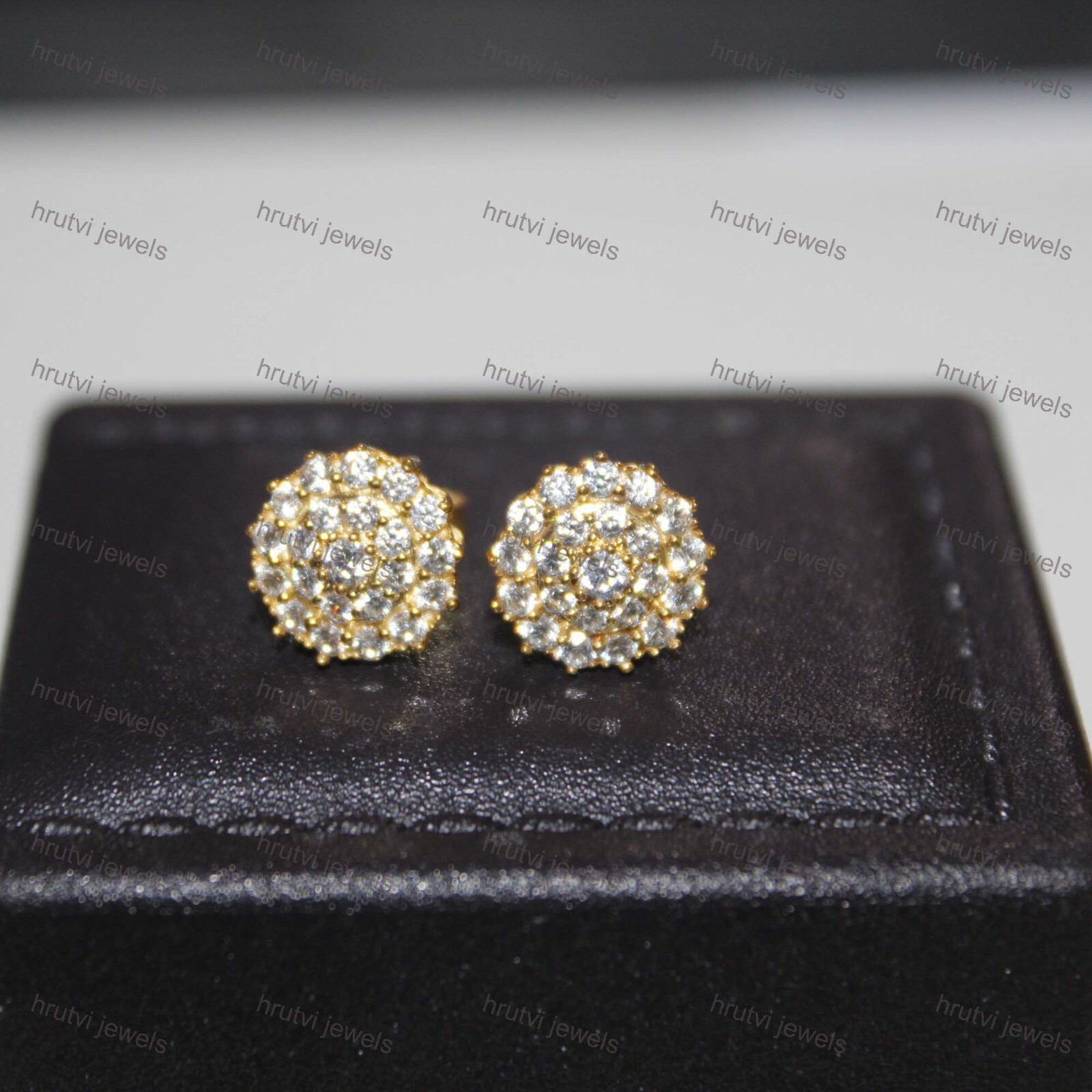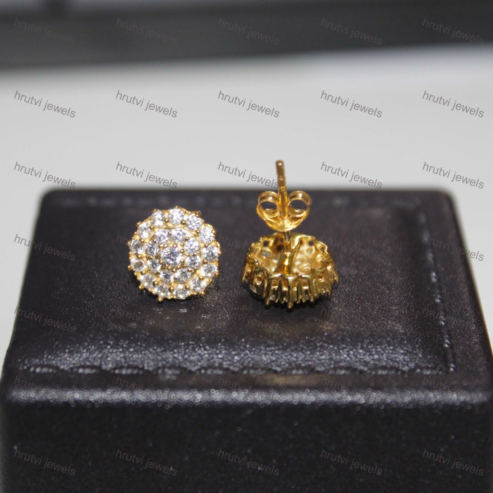как выглядит 2.00Ct Round Cut Real Moissanite Cluster Stud Earrings 14K Yellow Gold Plated фото