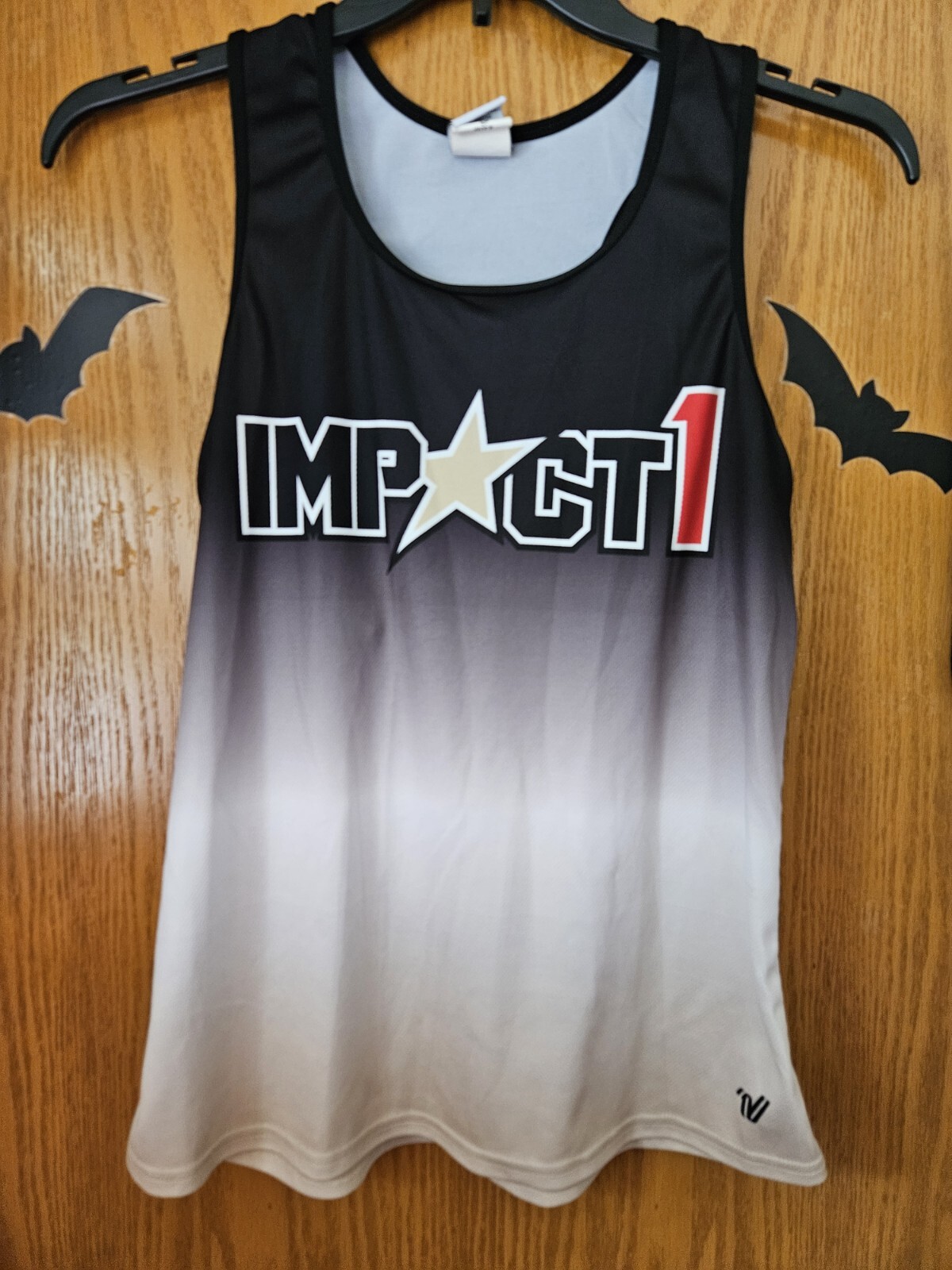 Varsity Spirit Cheer Tank Top Impact 1 onefamily Sz Sm Ombre Shade Back White