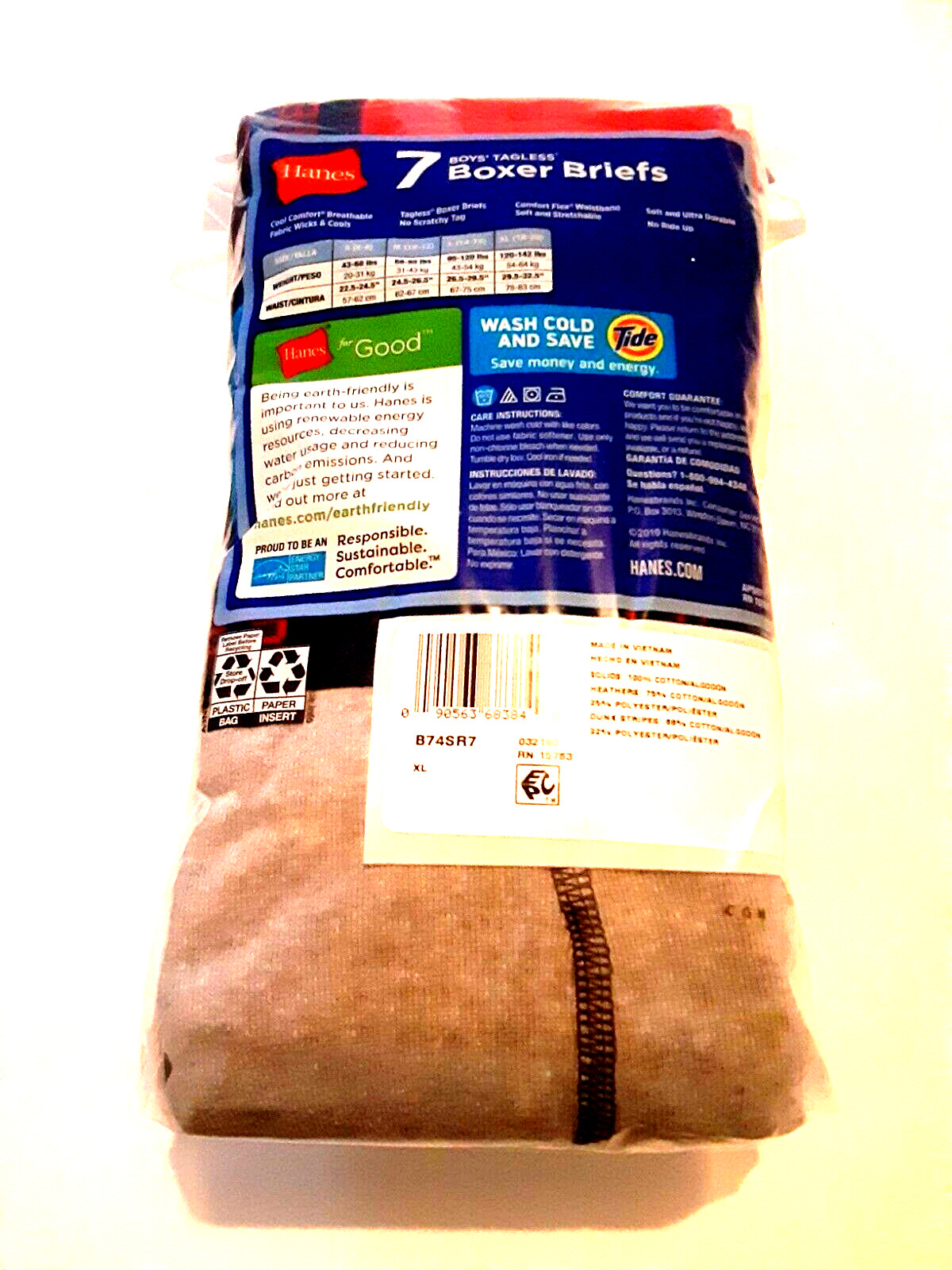 Hanes Boys Tagless Boxer Briefs 7 Pk Size XL/XG 18-20 Cool Comfort Fabric