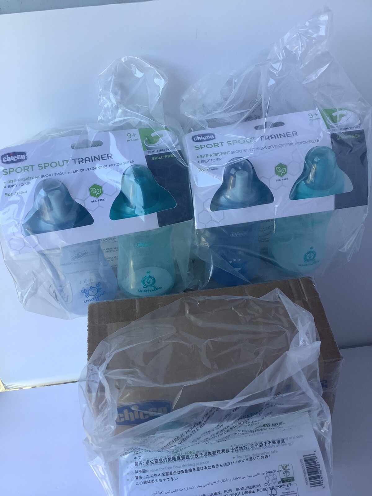 6 Pack Chicco Sport Spout Trainer Blue and Teal Cups 9 oz, 9 Months New