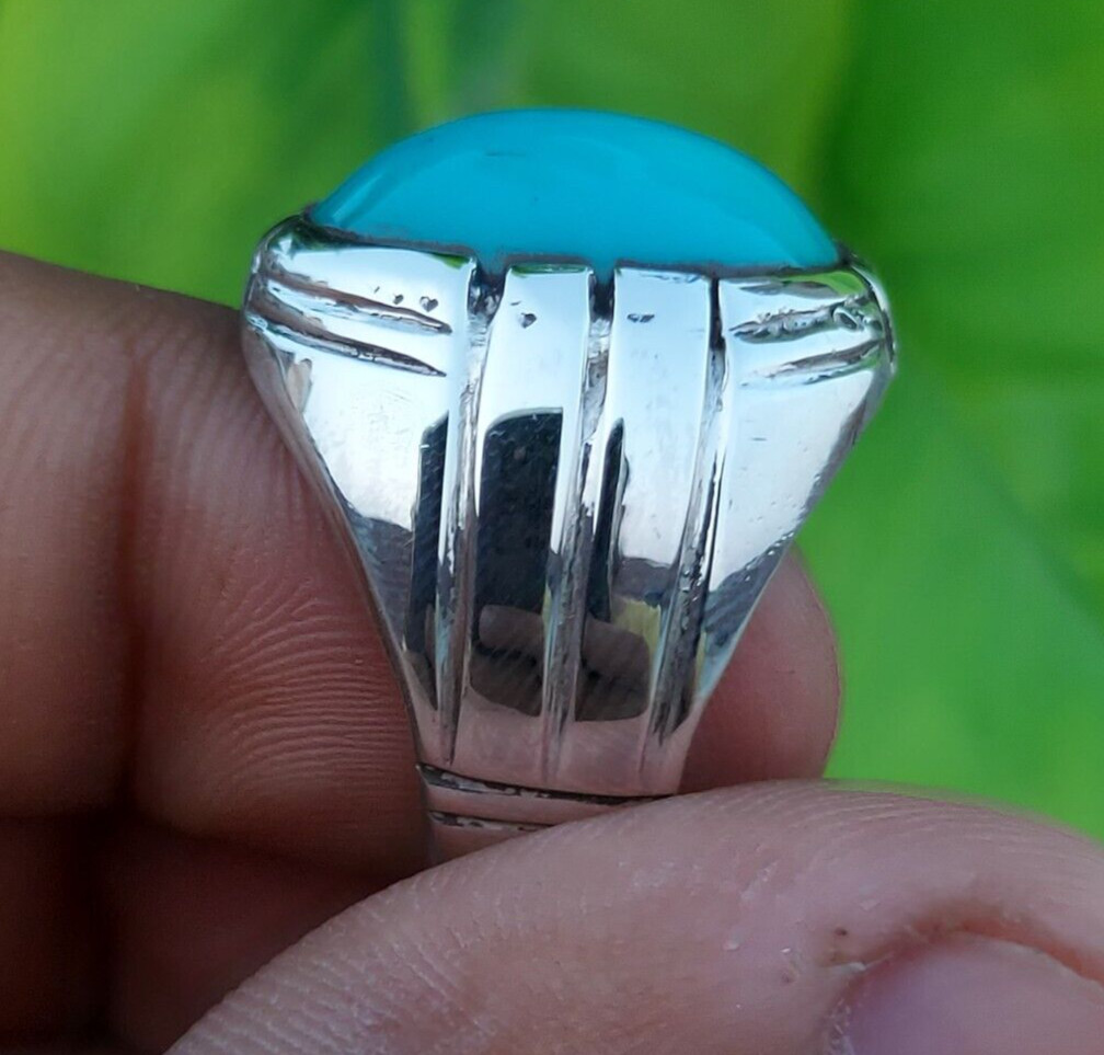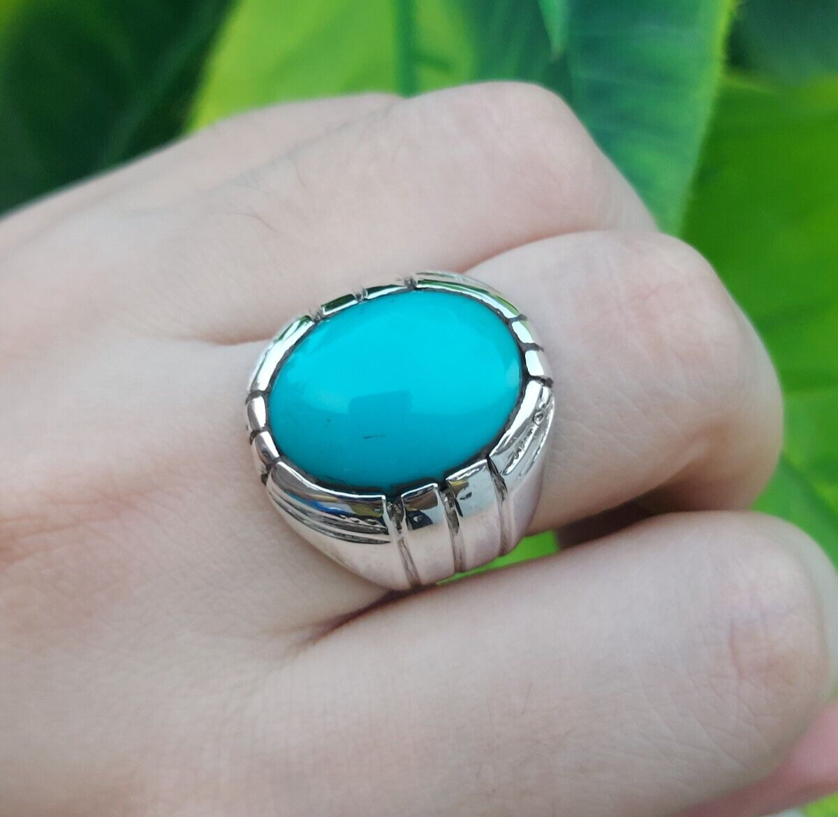 как выглядит Natural Turquoise Stone One Color Feroza Ring Sterling Silver Handmade Ring фото