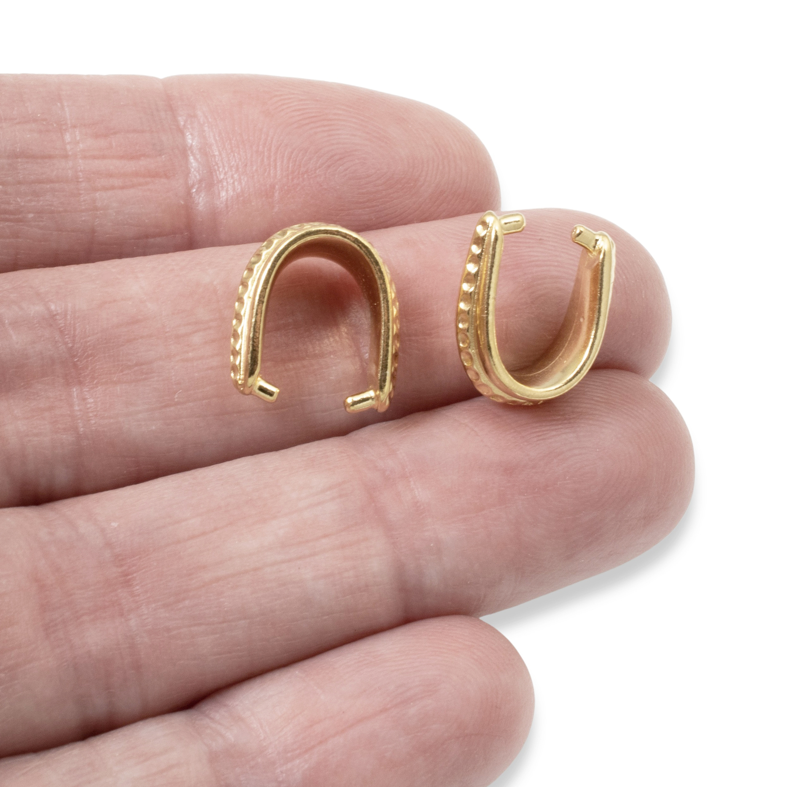 4Pc Gold Large Hammered Pinch Bails, Tierracast Pendant Holders, Necklace Making