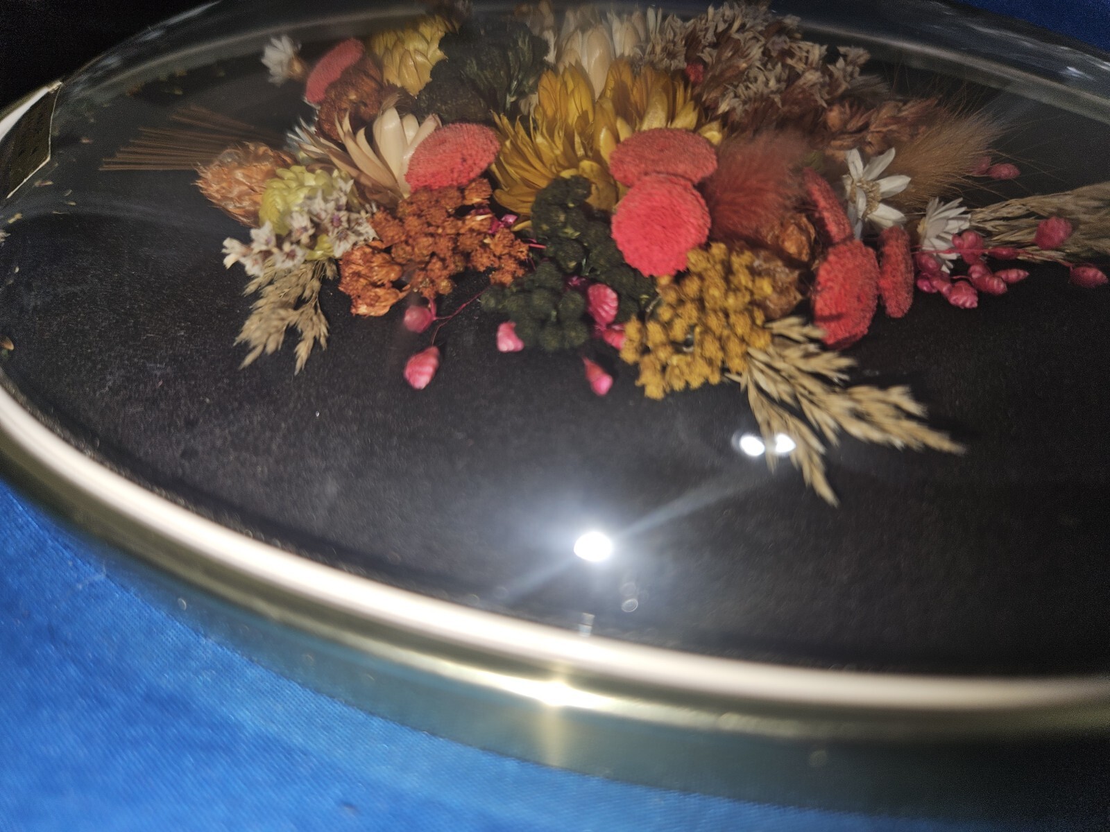 как выглядит Vtg Dried Flowers Wall Art 9 Domed Convex Bubble Glass Brass Cideart Belgium фото