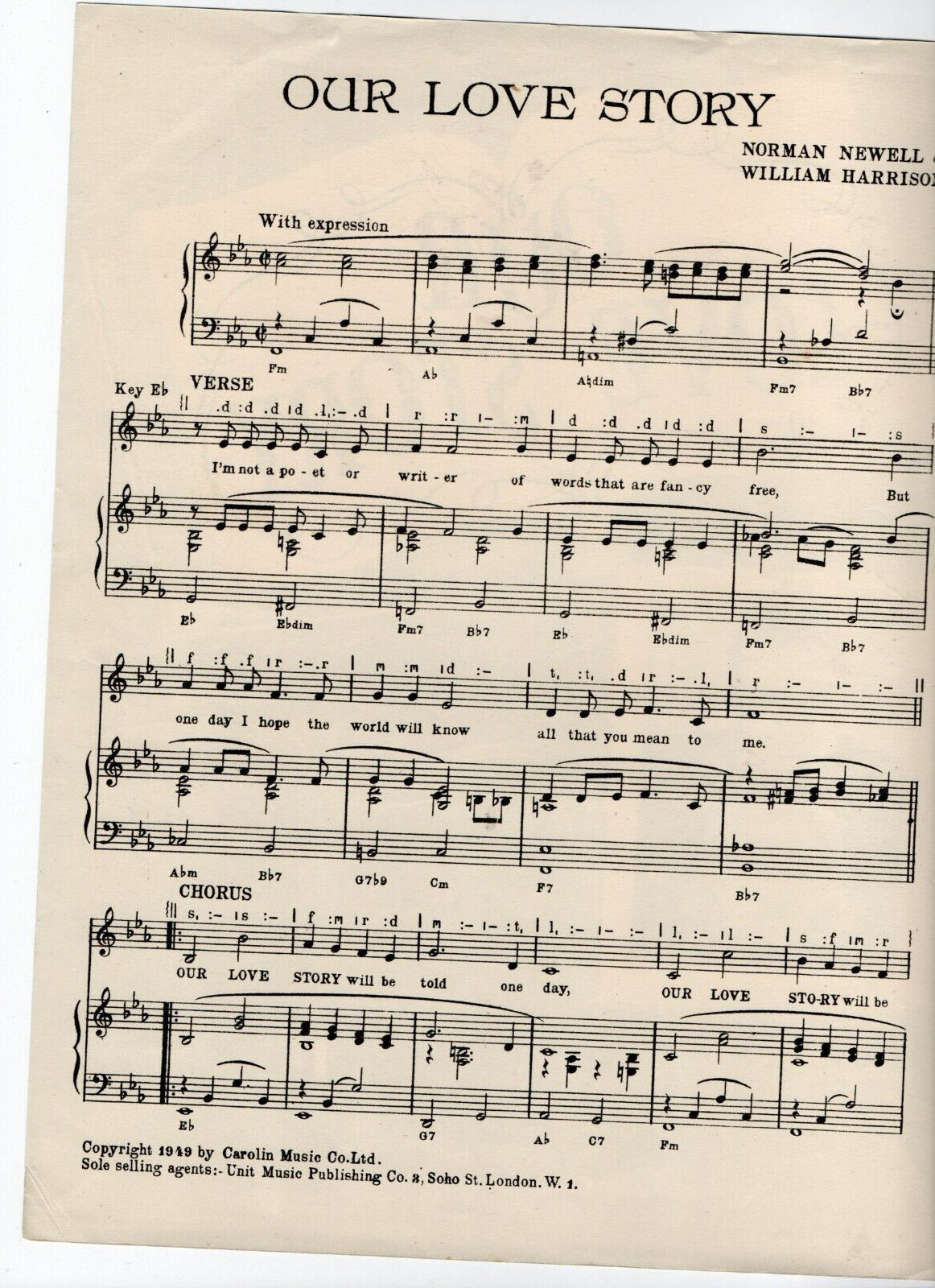 SHEET MUSIC OUR LOVE STORY BILL JOHNSON WILLIAM HARRISON NORMAN NEWELL 1949