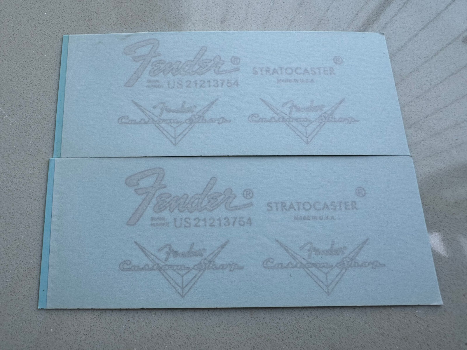 2Set FENDER STRATOCASTER Custom Shop Guitar Headstock Waterslide Transfer Decals