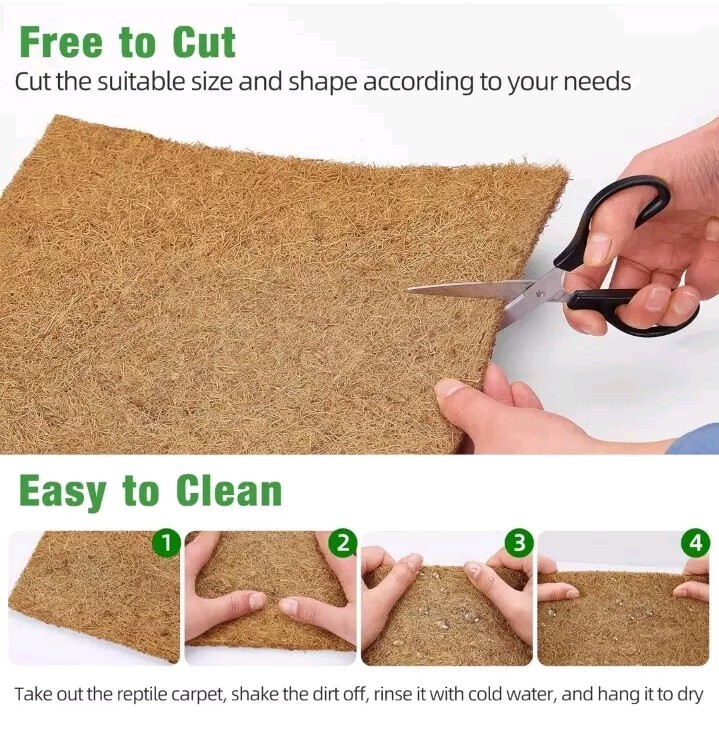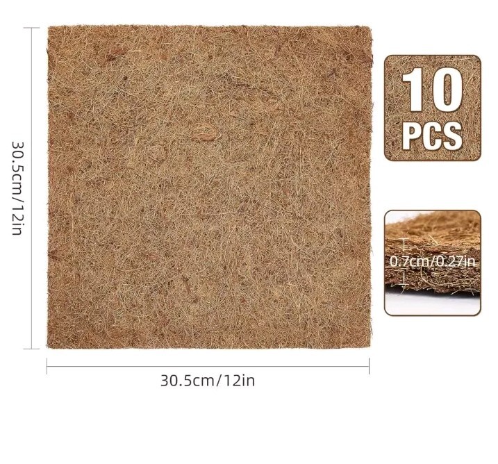 10 Pc: 12x12 Reptile Carpet Natural Coconut Fiber Coir Mat Pets Terrarium Liner