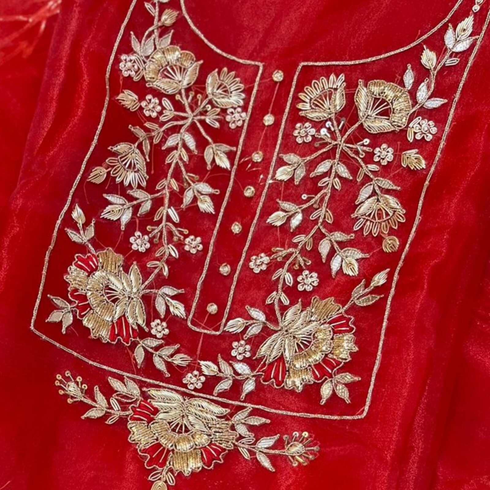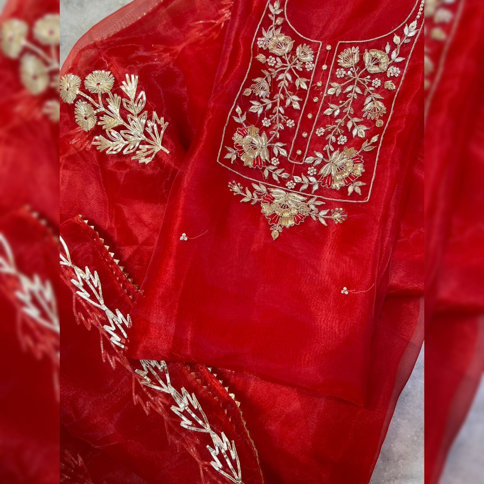 Red Organza Suit Dupatta New Wedding Wear Designer Gotta Patti Work Diwali Gift