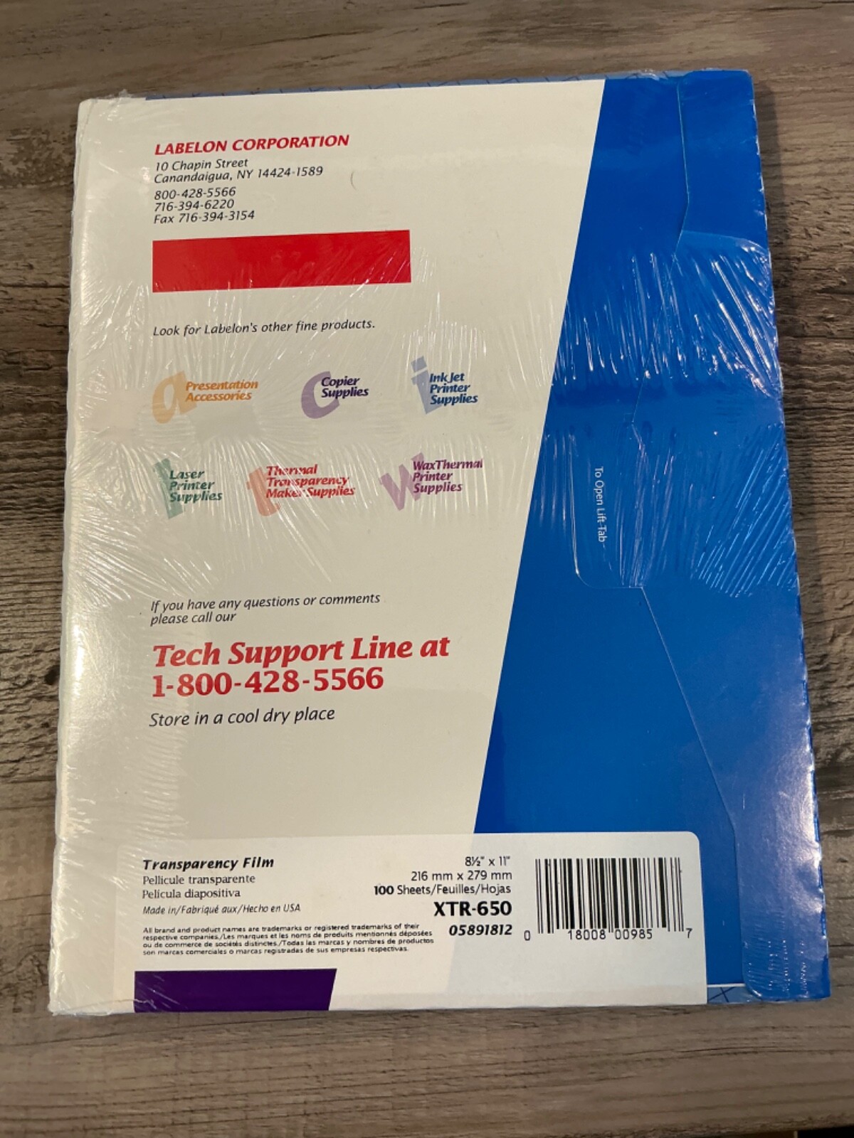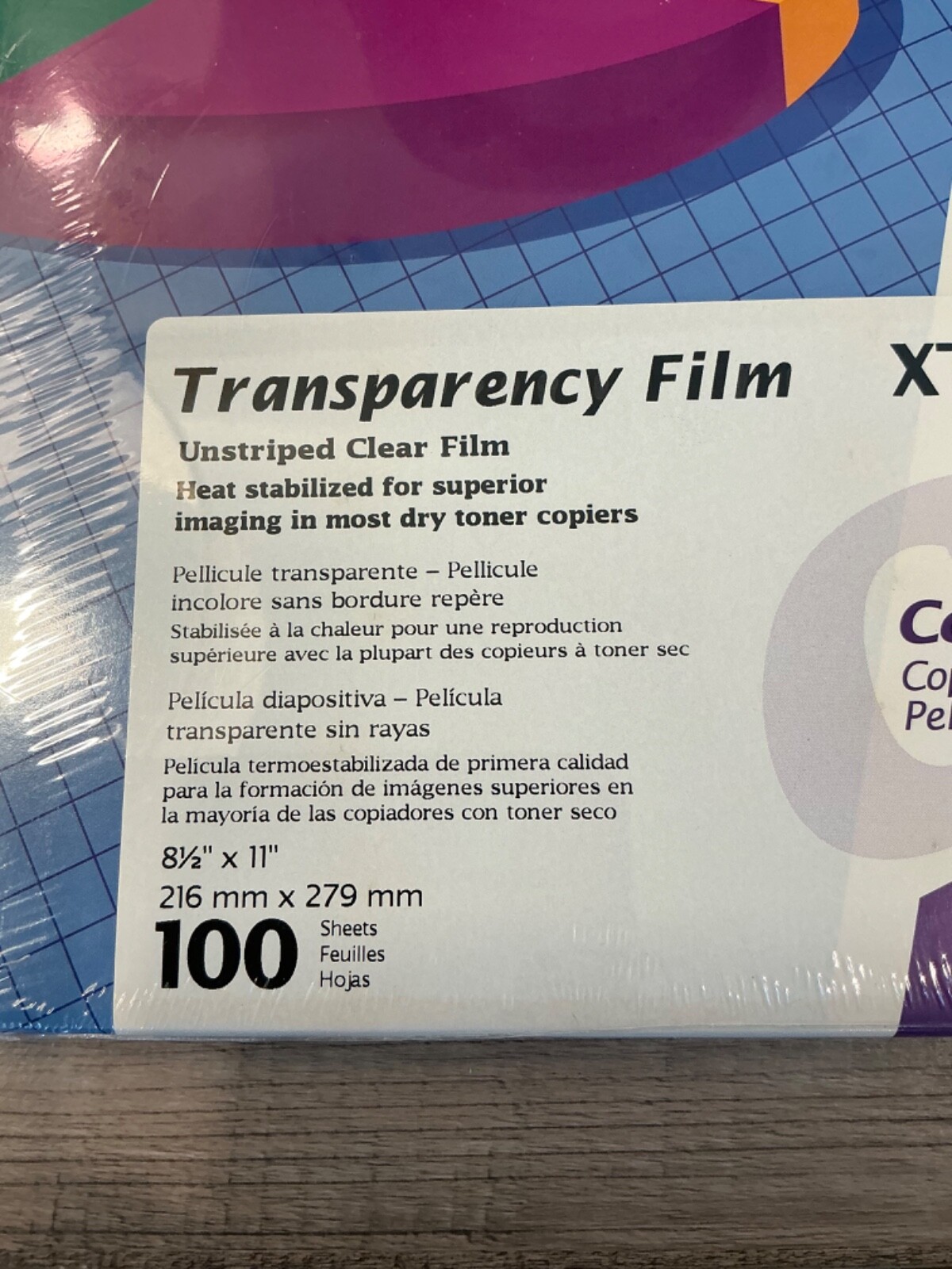 Transparency Film XTR-650 Copier 100 Sherts New School Office