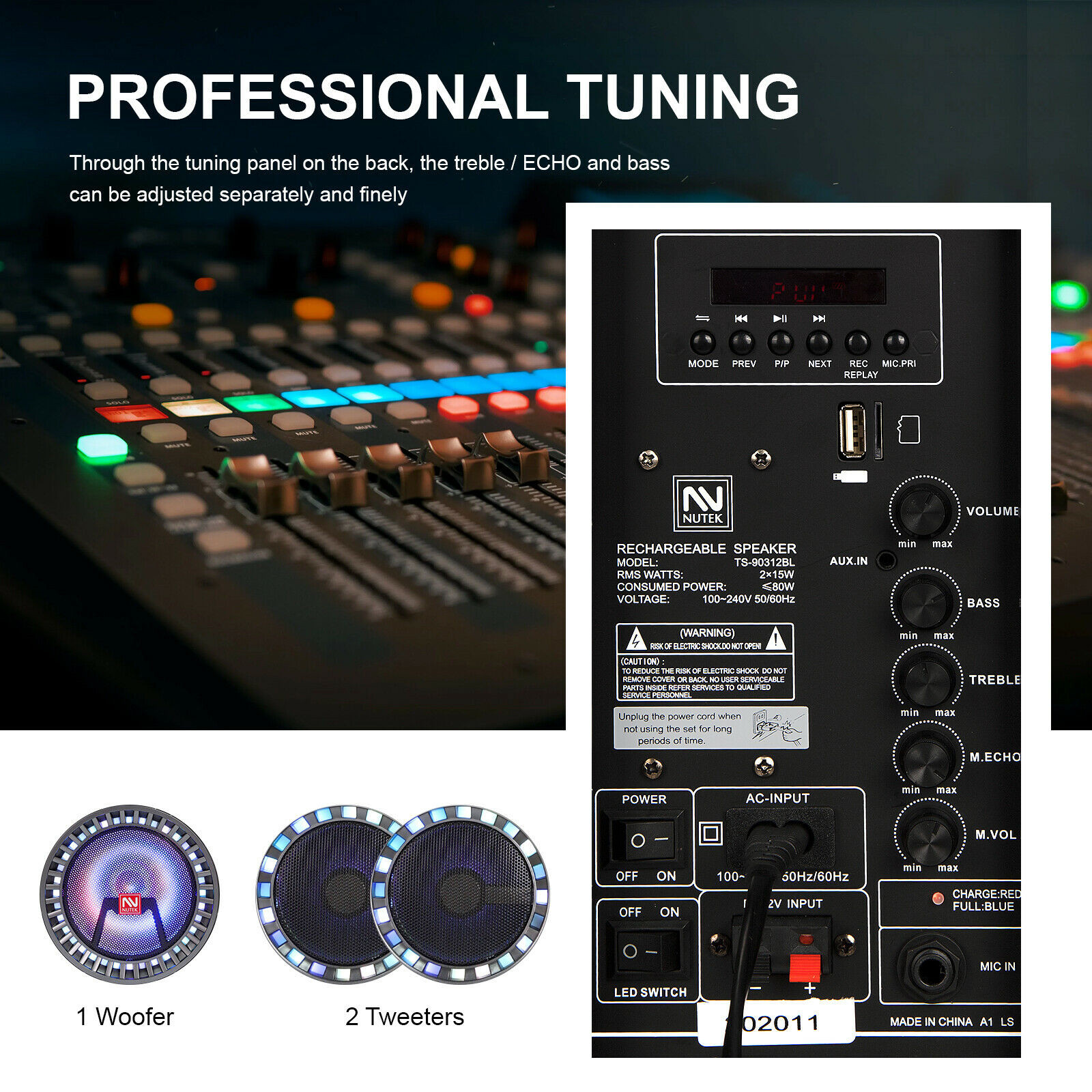 как выглядит 12" 3000W Portable Party Bluetooth Speaker System Subwoofer Stereo W/ Mic Remote фото