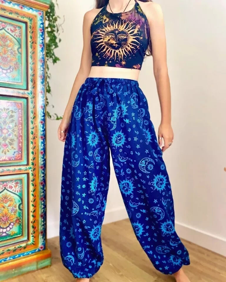 как выглядит 5 Pc Recycle Silk Sari Women Long Boho Hippie Pant Elastic Waist Silk Harem Pant фото