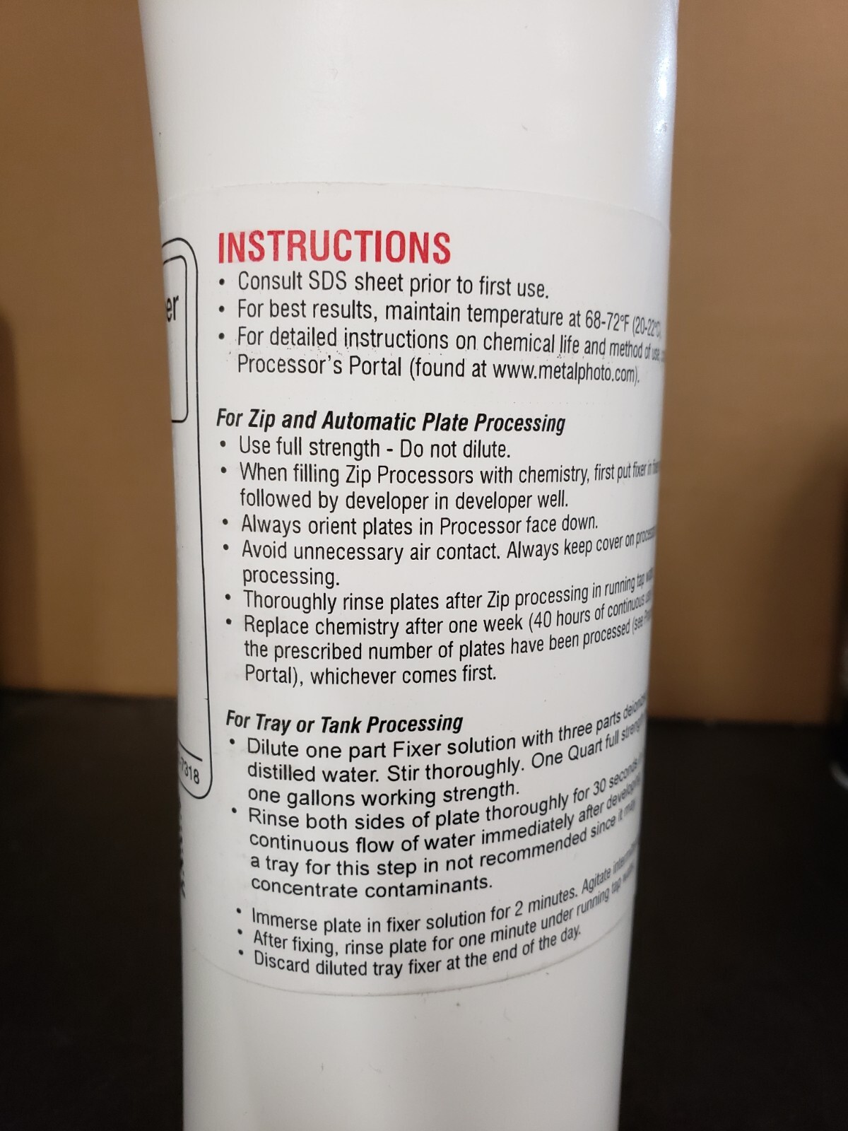 Metalphoto Zip Tray Fixer- 1 Quart Bottle- 7150