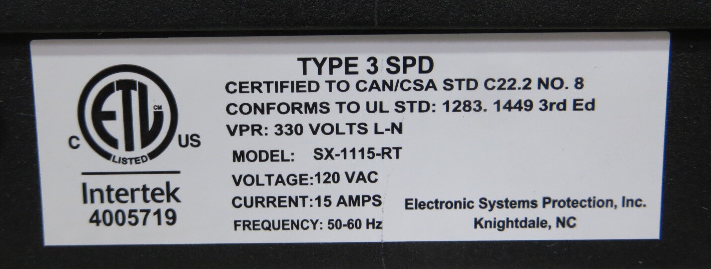 T195262 SurgeX SX-1115-RT Surge Eliminator/Power Conditioner 9 Outlets