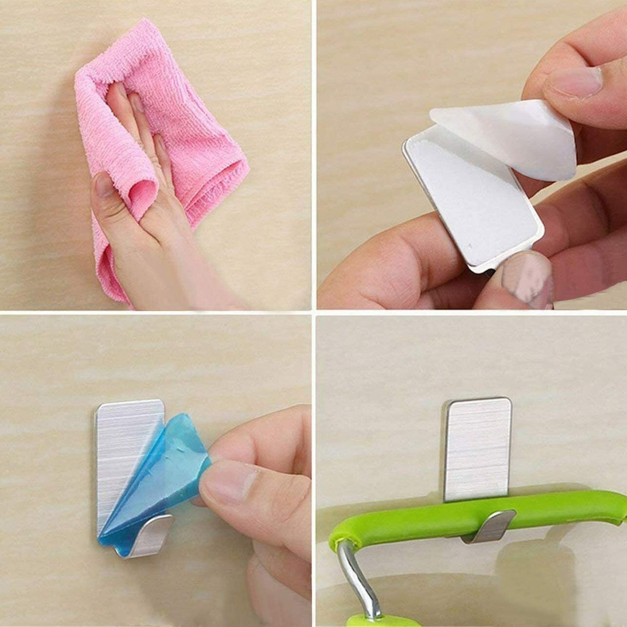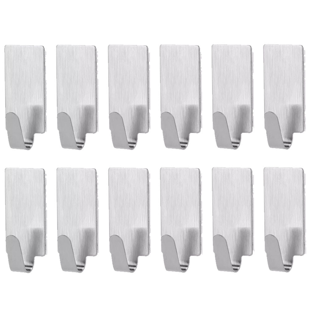 12pc Self Adhesive Stainless Steel Hooks Bathroom Wall Door Strong Sticky Holder