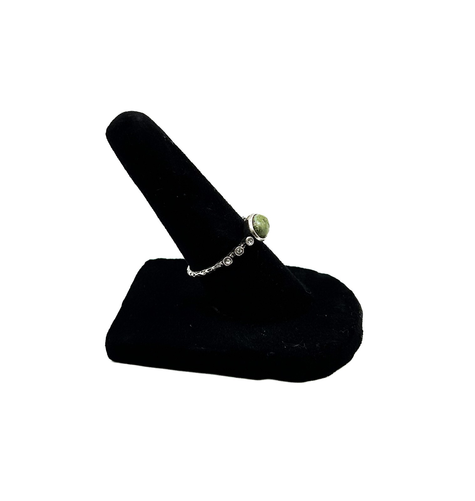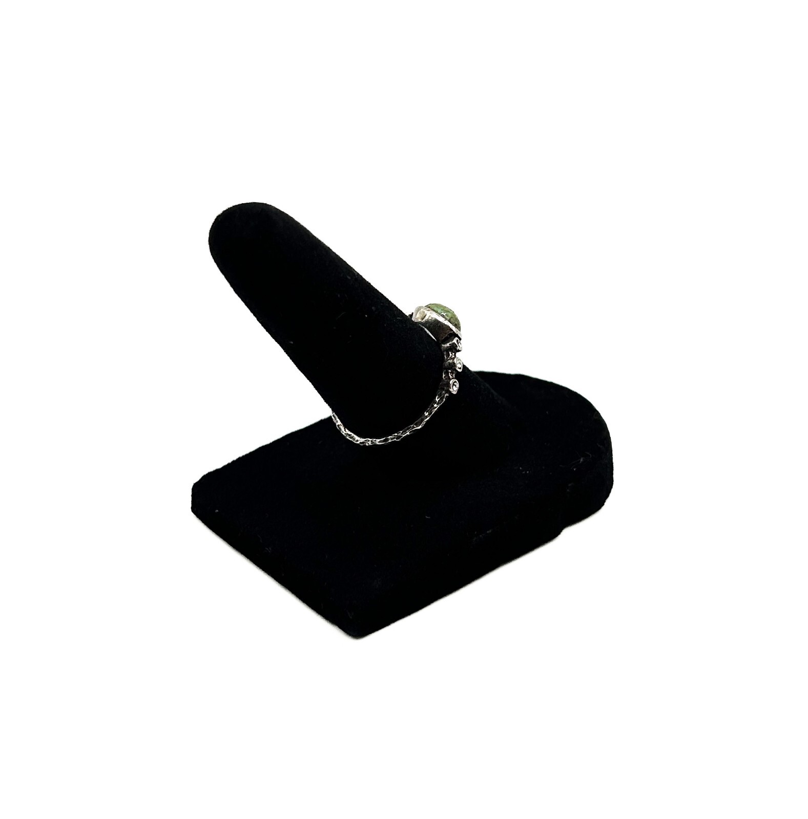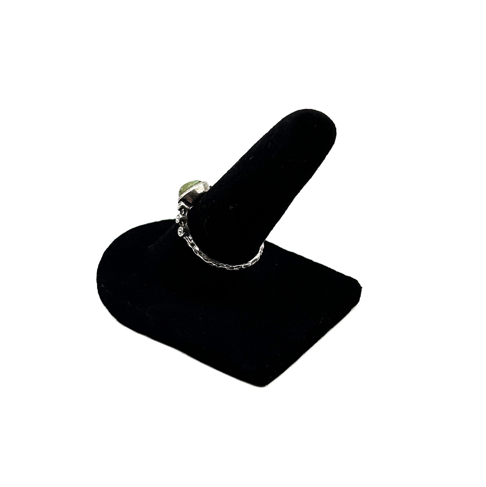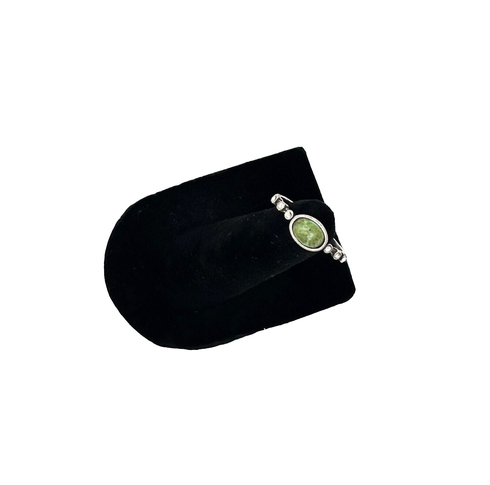 как выглядит Sterling Silver 925 Ring w/ Central Green Stone Clear Gems, Size 7.5-8 фото
