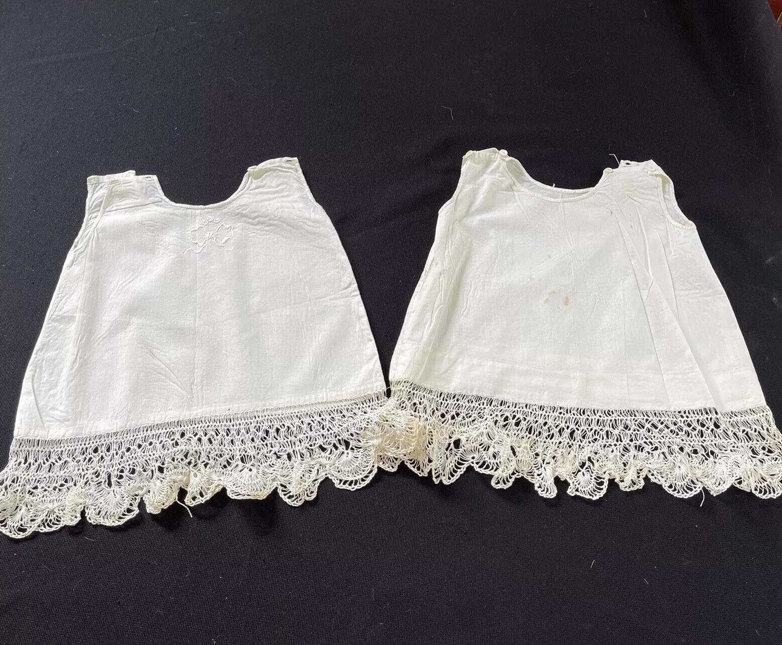 как выглядит Pair Of Antique Off White Cotton Child s Gowns Handmade Netted Or Hairpin Lace фото