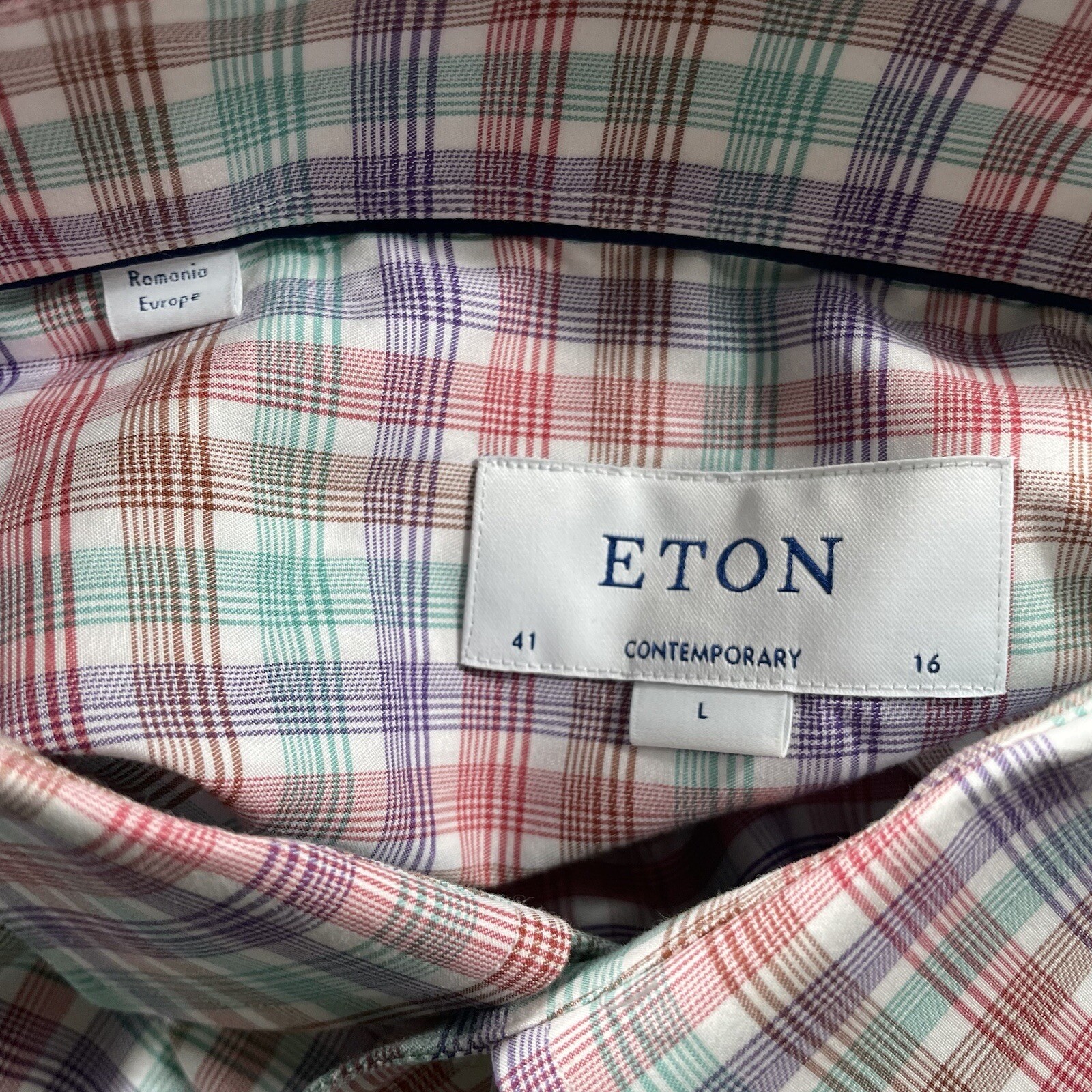 NWT Eton Mens Contemporary Fit Plaid Cotton Shirt Pink/Red Multi Size LG 41/16