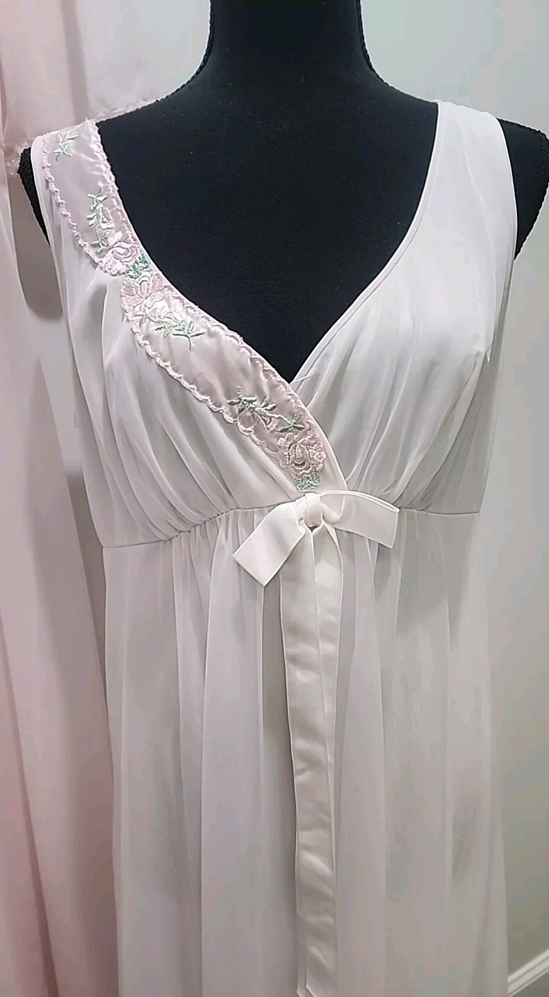 как выглядит SHADOWLINE Pink Bridal Peignoir Set Nylon Nightgown Chiffon Robe Sz M USA Made фото