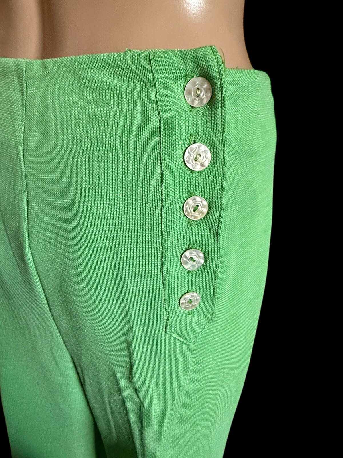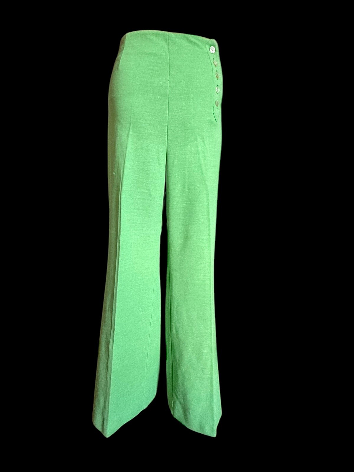 VTG Glen Of Michigan Green Bell Bottom Wide Leg Pants Side Button 30 Wx30
