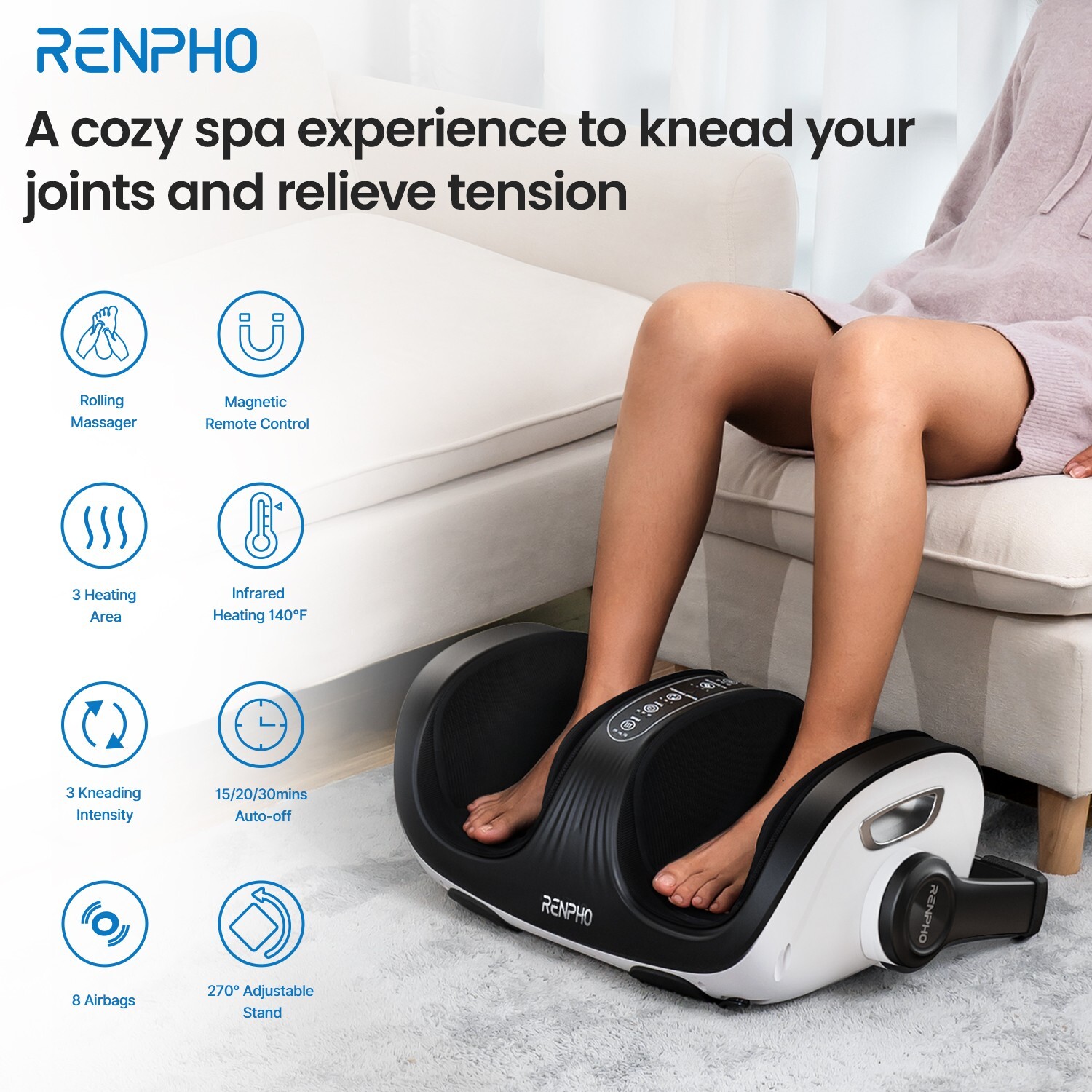 RENPHO Shiatsu Foot Massager with Heat Foot Calf Massager Remote Control Gift