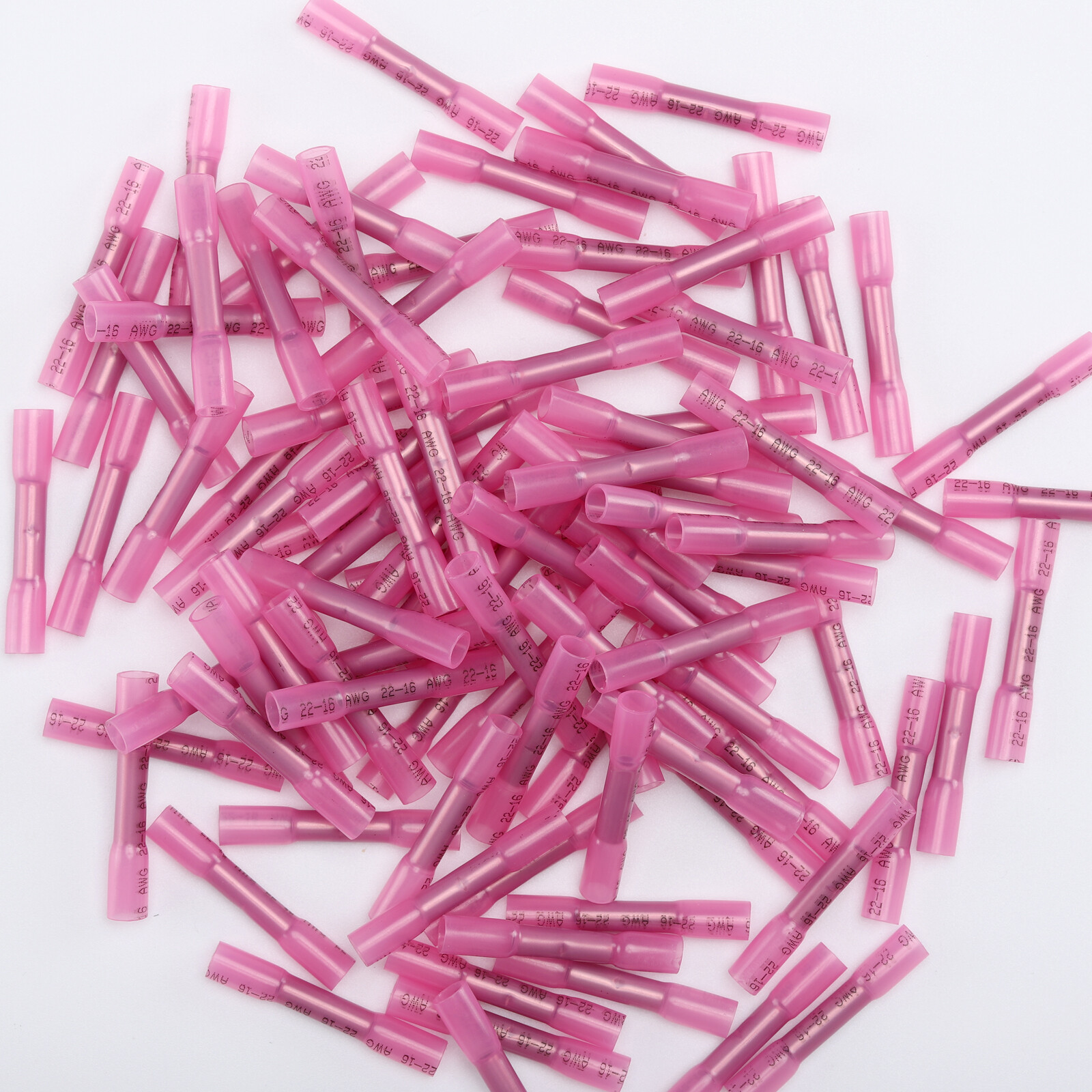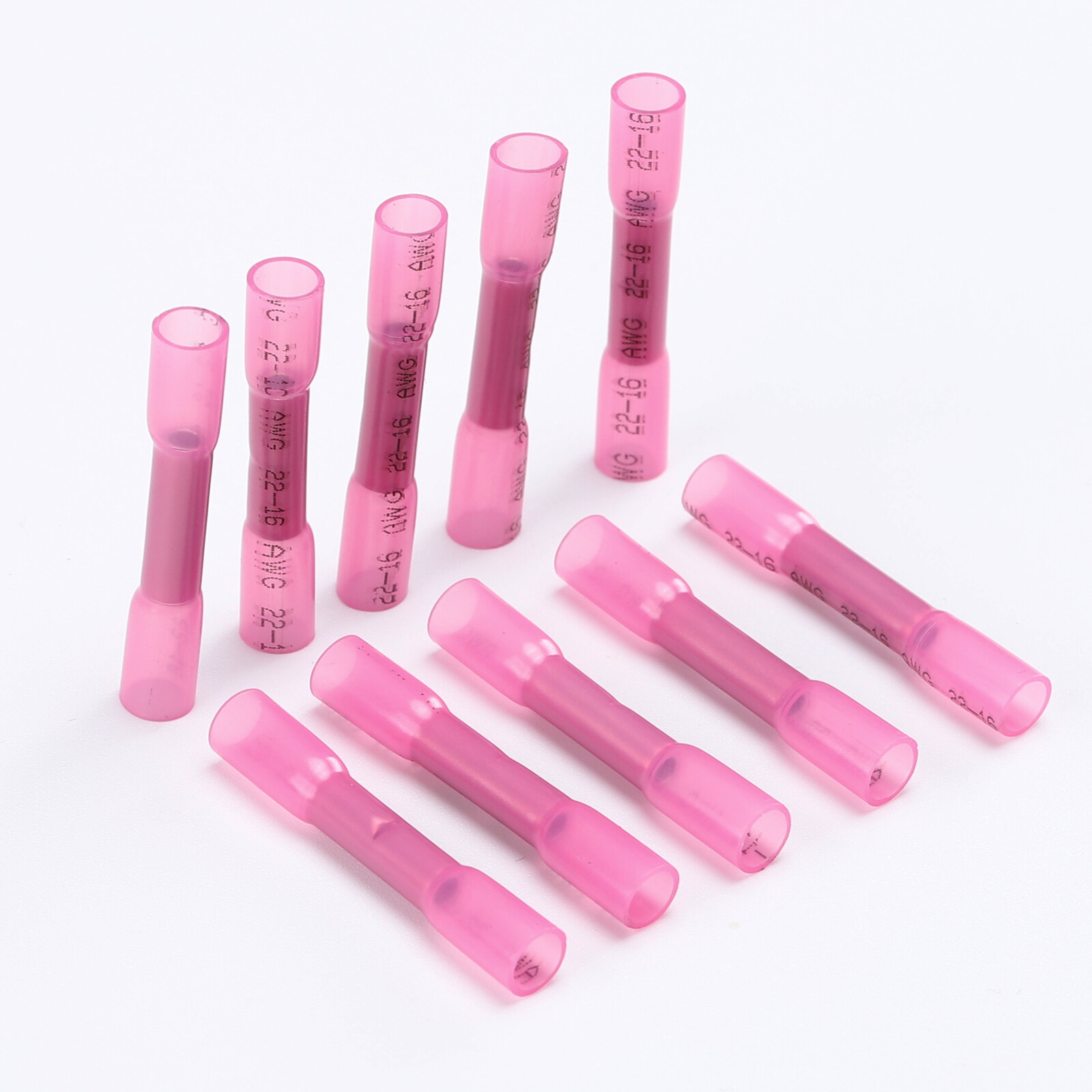 100Pcs 22-16AWG Red Heat Shrink Wire Butt Connectors Waterproof Splice Terminals