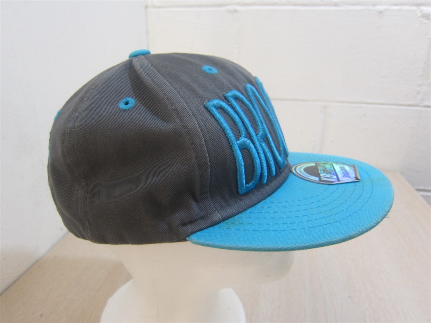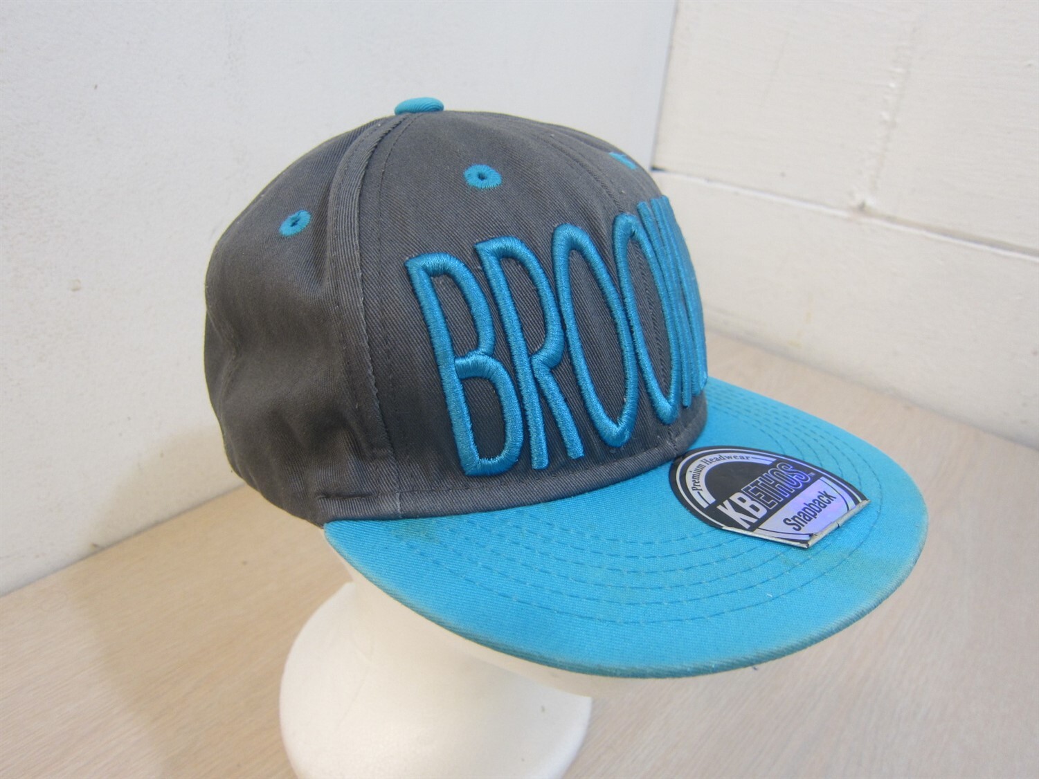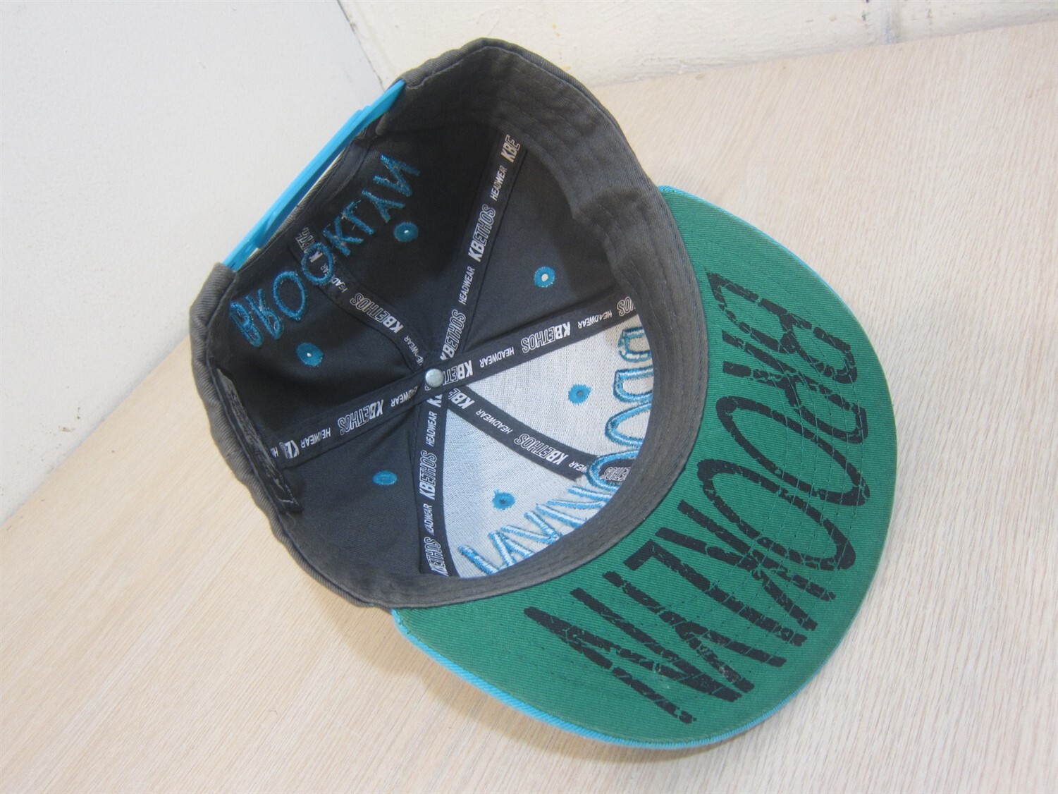 как выглядит KBETHOS BROOKLYN BASEBALL STYLE ADJUSTABLE STRAPBACK HAT GRAY/TURQUOISE фото