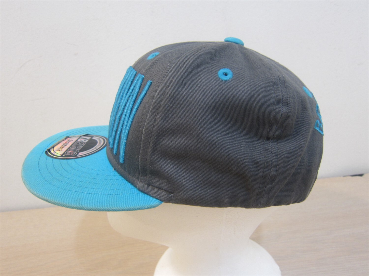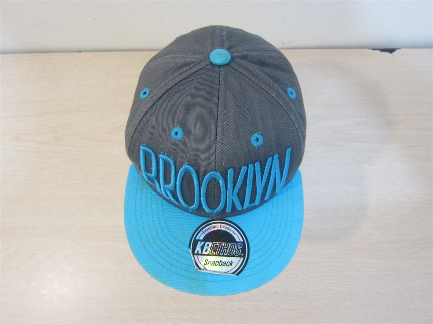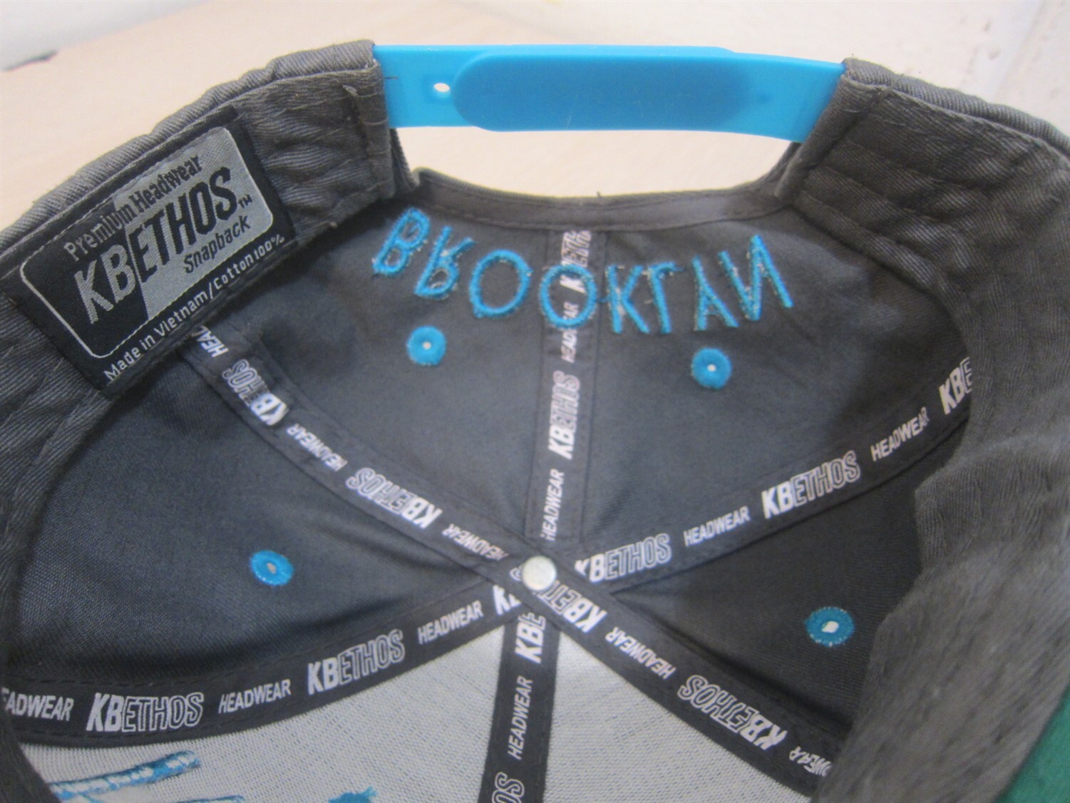 как выглядит KBETHOS BROOKLYN BASEBALL STYLE ADJUSTABLE STRAPBACK HAT GRAY/TURQUOISE фото
