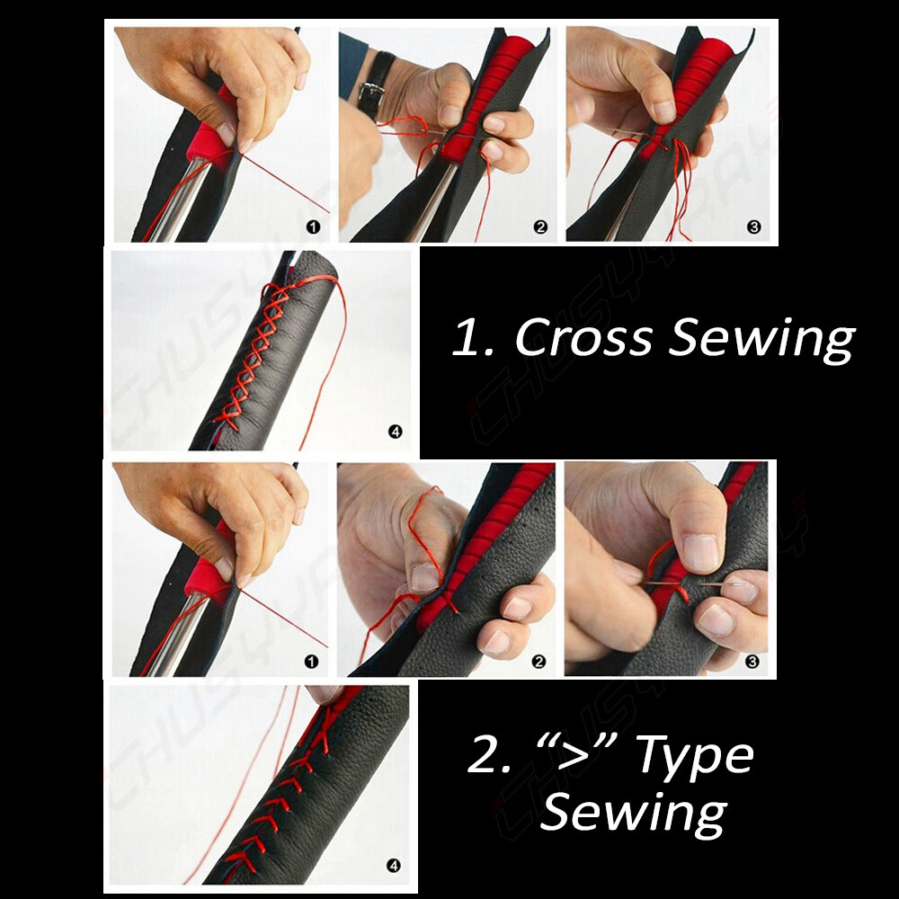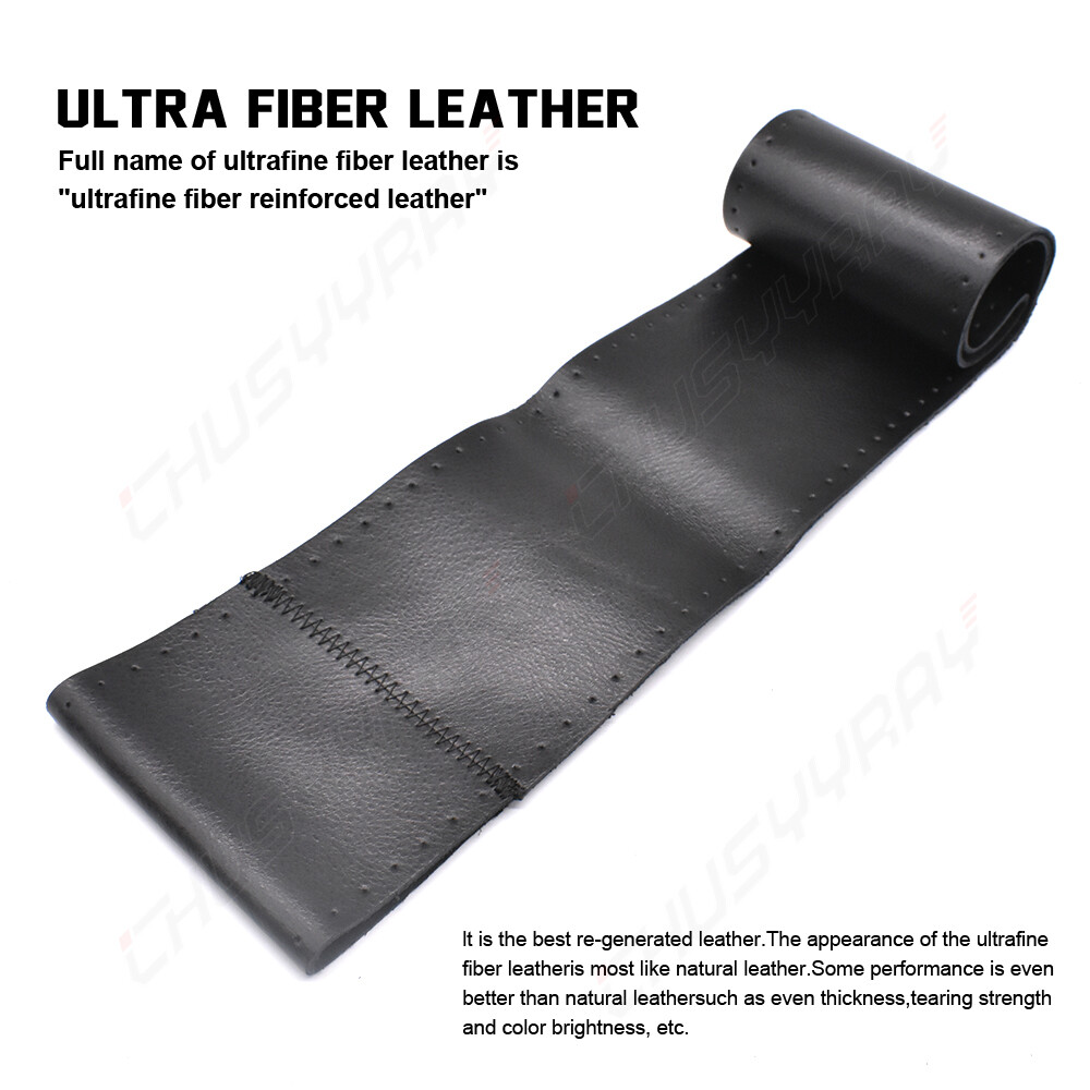 • Genuine Leather DIY Car Steering Wheel Cover Anti-slip For 15"/38 cm Black US