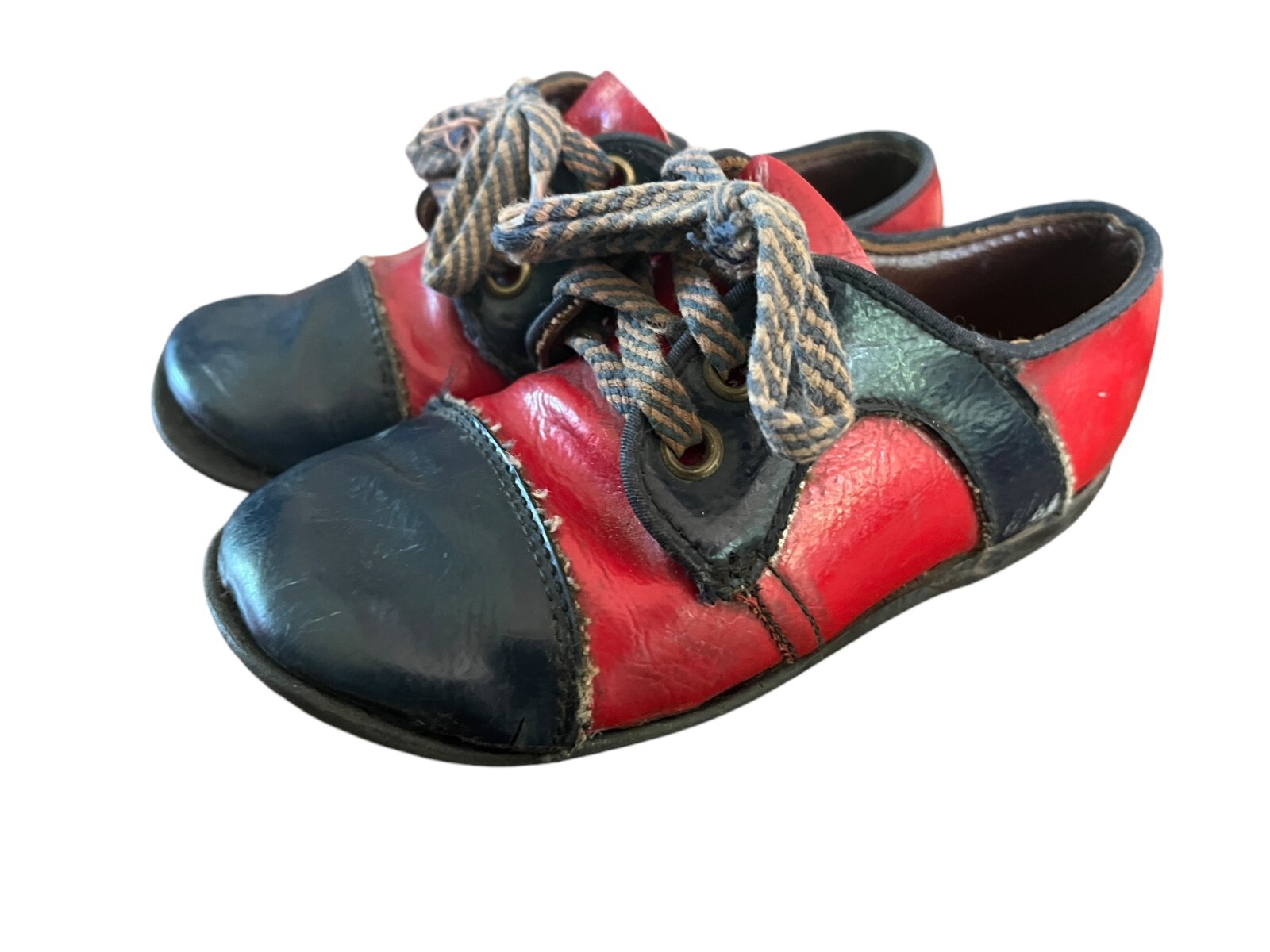 как выглядит Vinage 60s 70s Two Toned Navy and Red Kids Loafers Oxfords Toddler Shoes фото